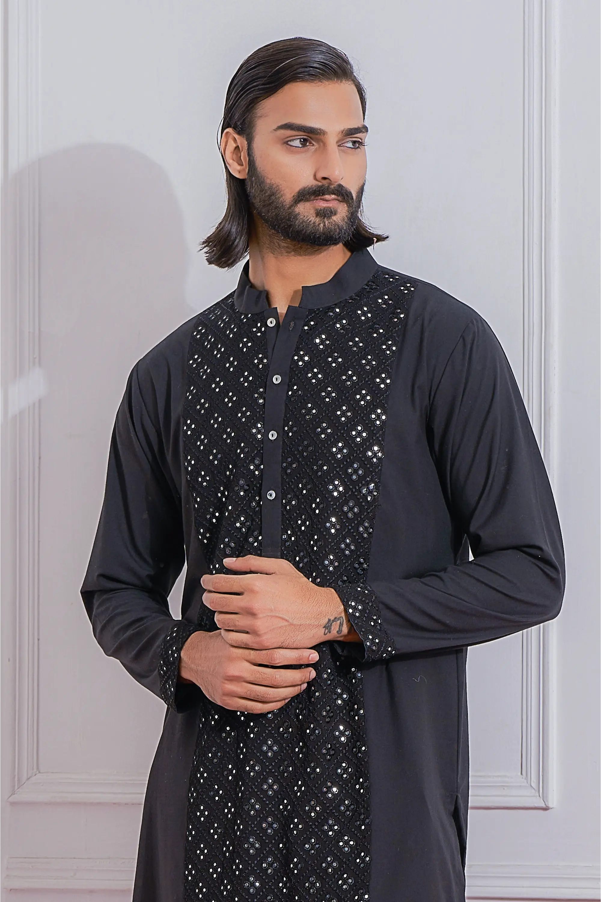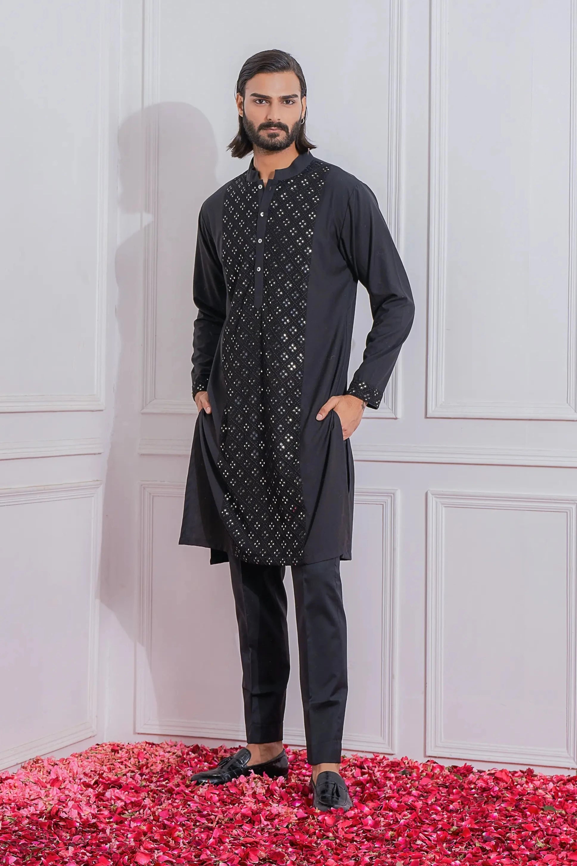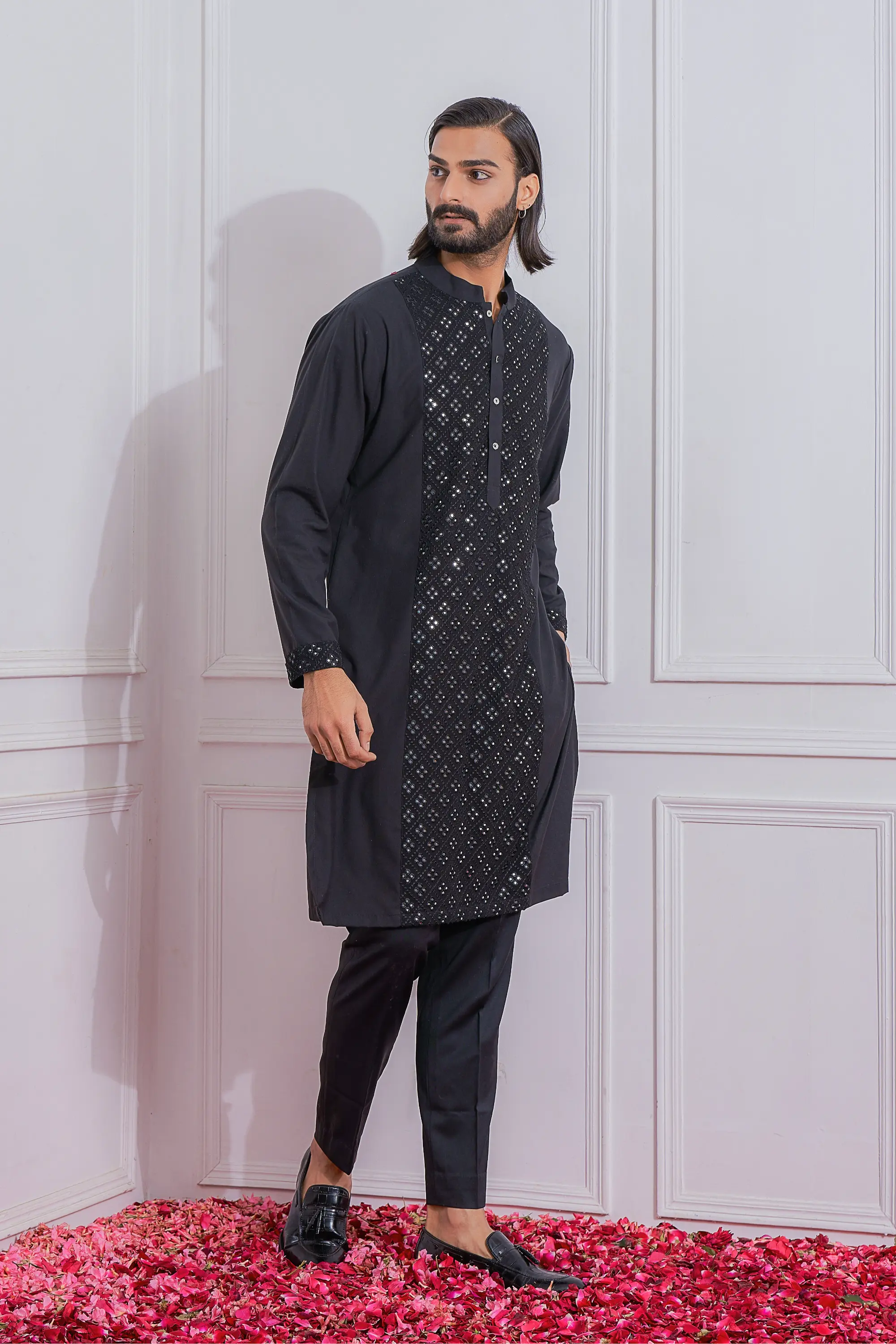 Black sadiqabad kurta set