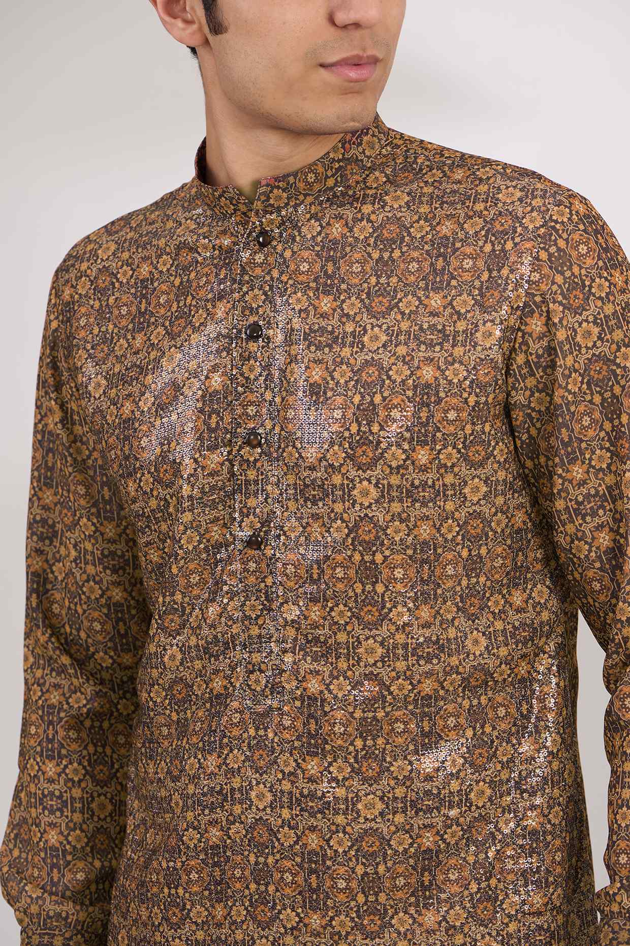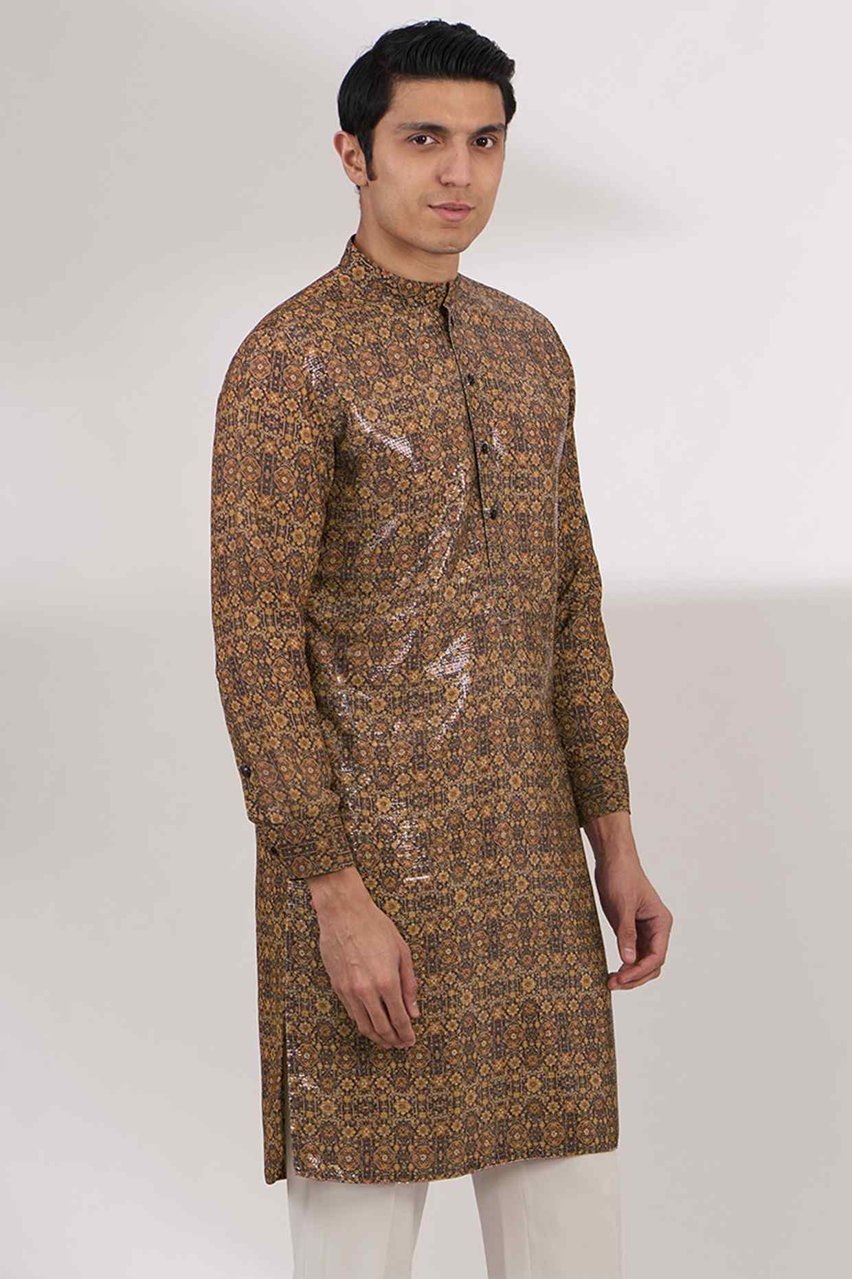 Paired with coordinating cotton-silk pants, this set offers a polished and refined finish. Subtle sequin detailing on the kurta adds a touch of sparkle, making it ideal for special occasions and festive events.