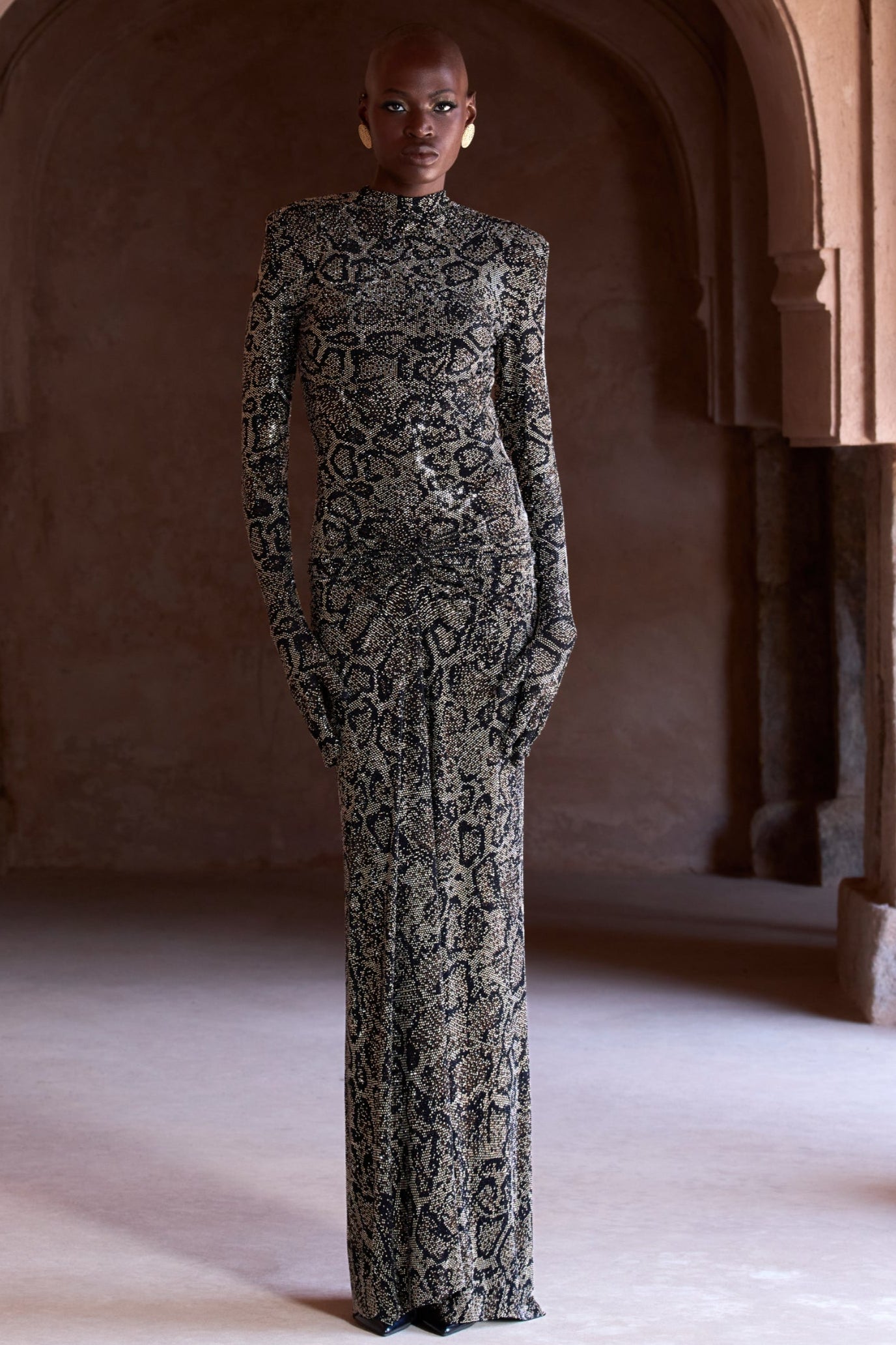 Exude timeless elegance with the Black Serpentina Seher Gown. The deep black hue creates a striking sophisticated look while the flowing silhouette offers a graceful and regal appearance. Crafted from luxurious fabric this gown is perfect for evening events formal gatherings or special occasions where you wish to make a bold yet refined statement. The Black Serpentina Seher Gown is for those who appreciate classic beauty with a modern twist.