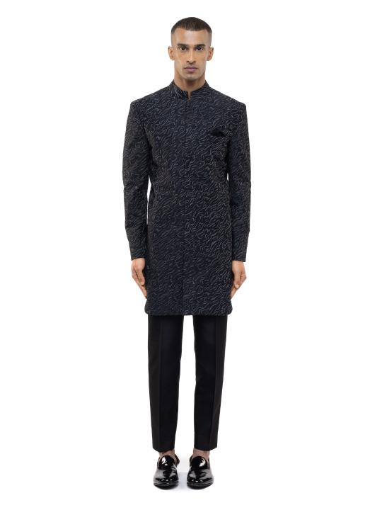Black & silver metallic embroidery sherwani set