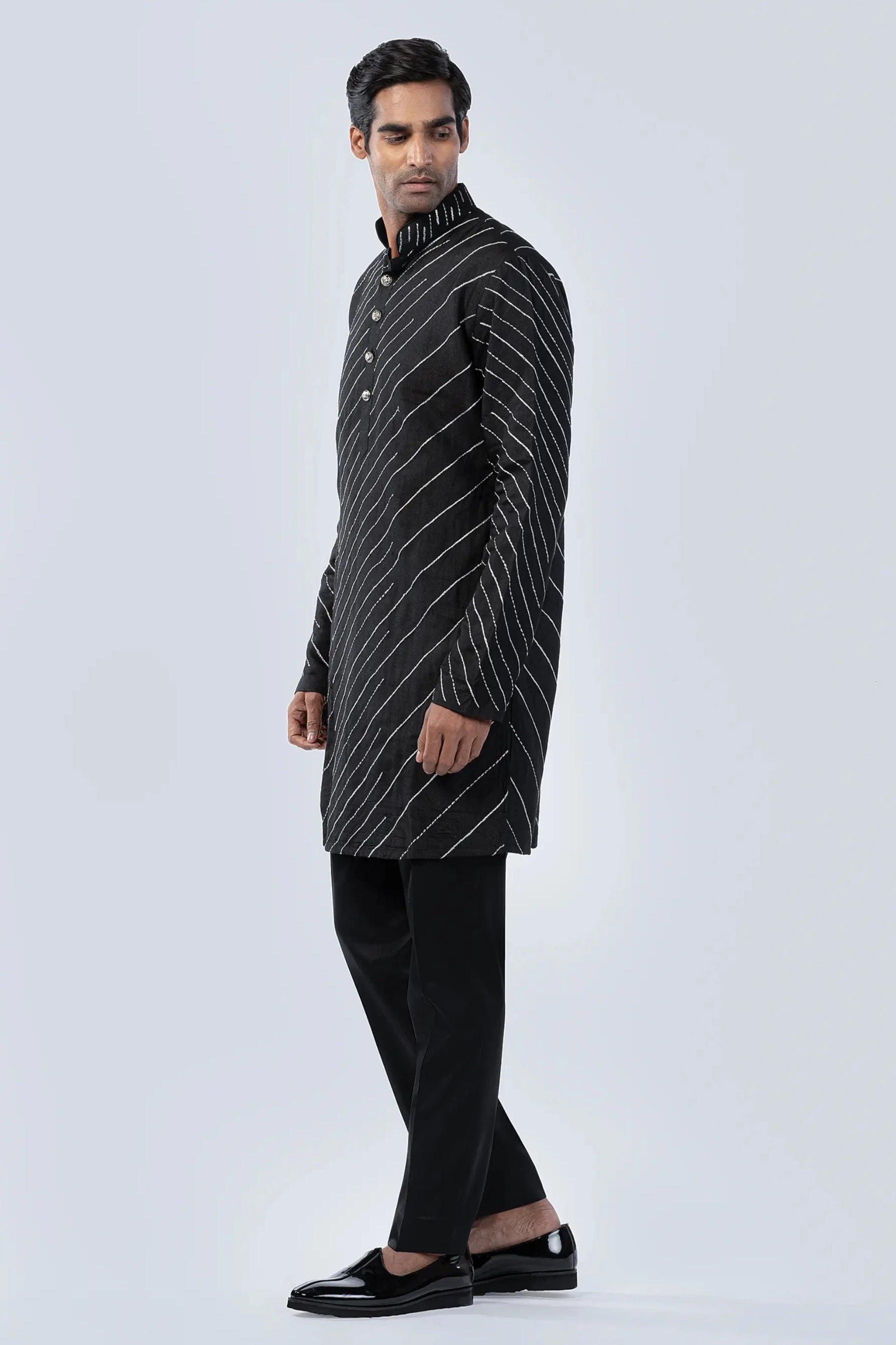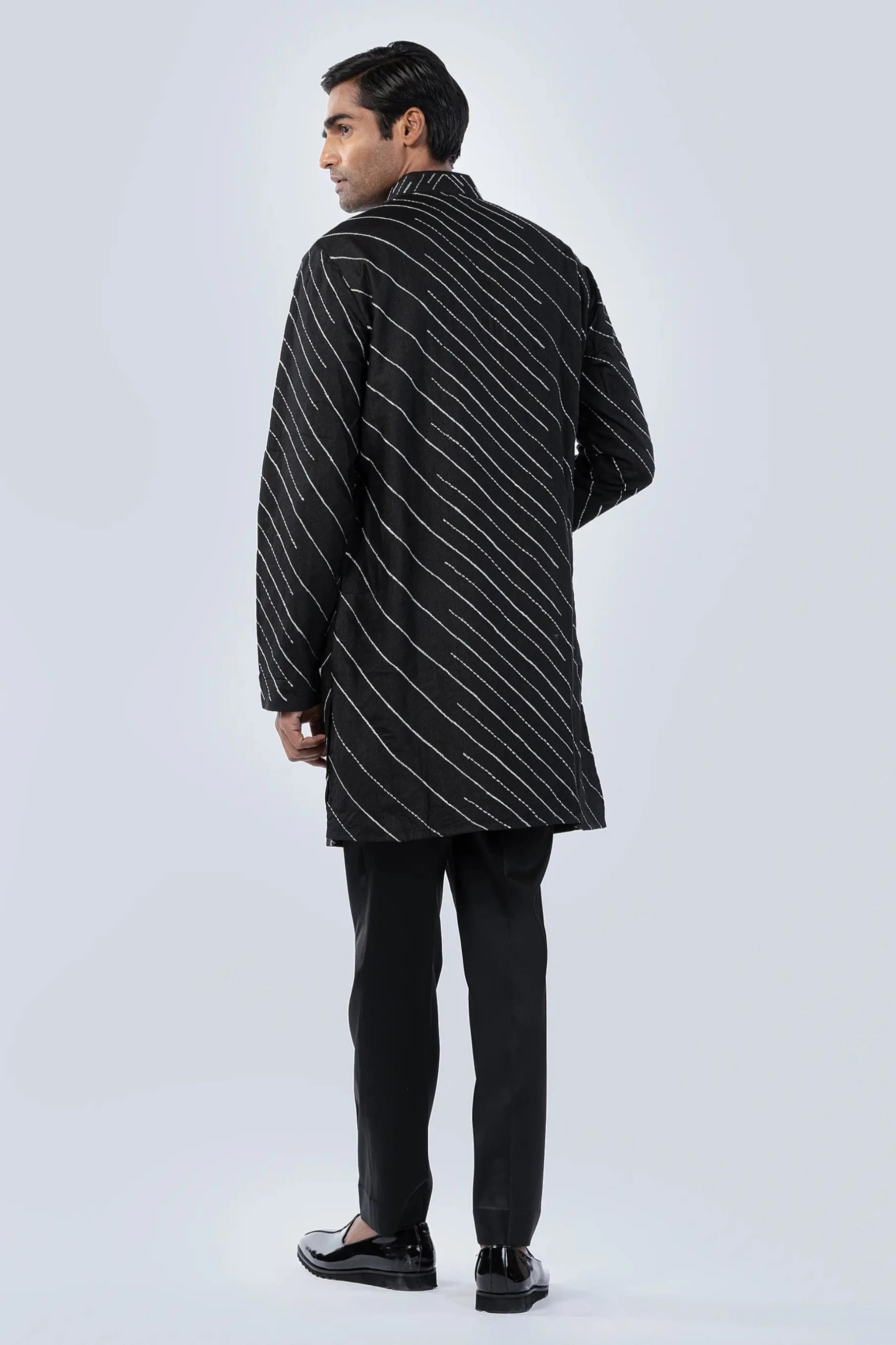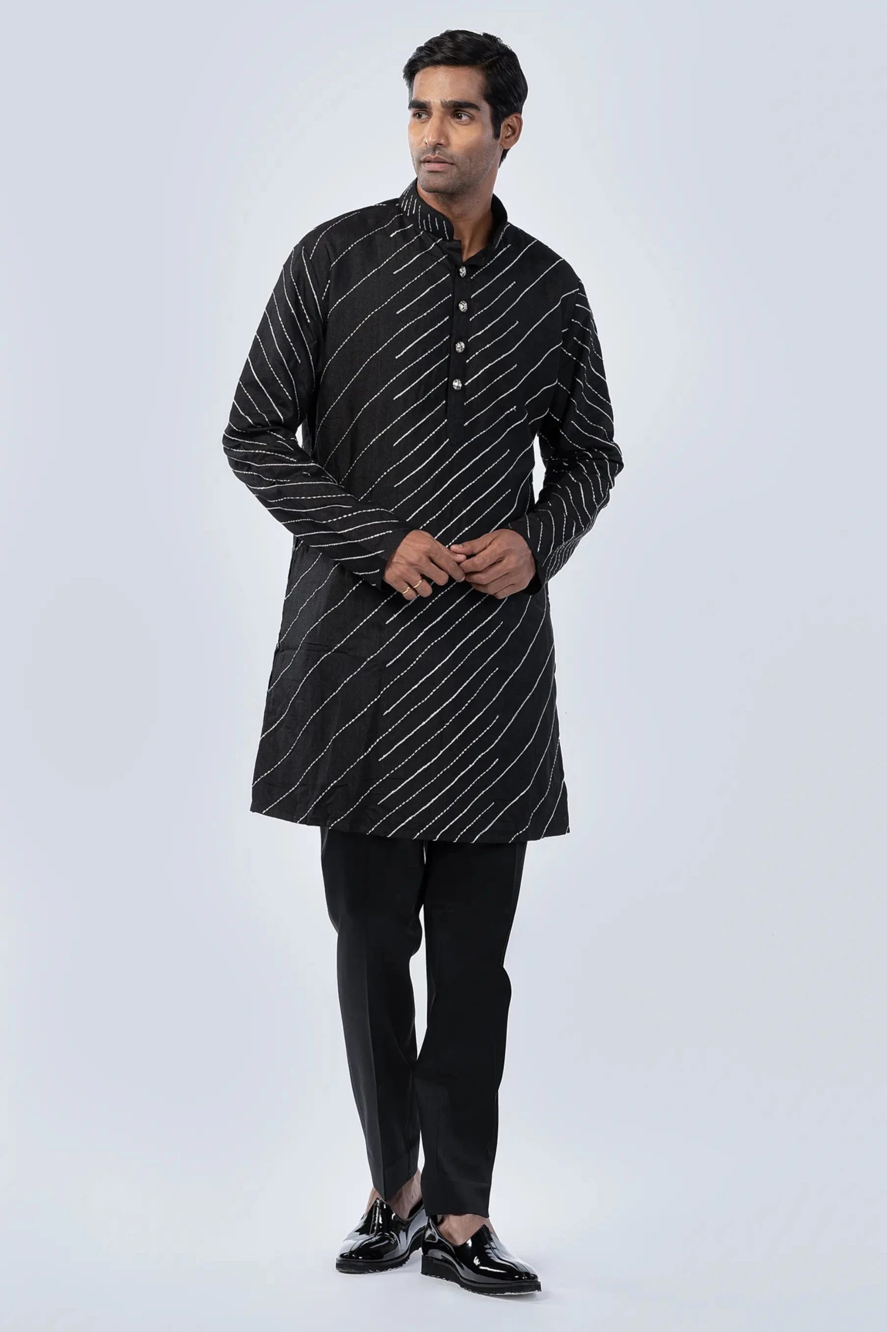 Step into timeless elegance with the Black Silver Resham Line Embroidered Kurta, a sophisticated fusion of classic design and contemporary luxury. The sleek black fabric provides a striking contrast, while the delicate silver resham line embroidery adds a touch of opulence and refinement. Ideal for weddings, formal gatherings, or festive occasions, this kurta makes a bold yet elegant statement.