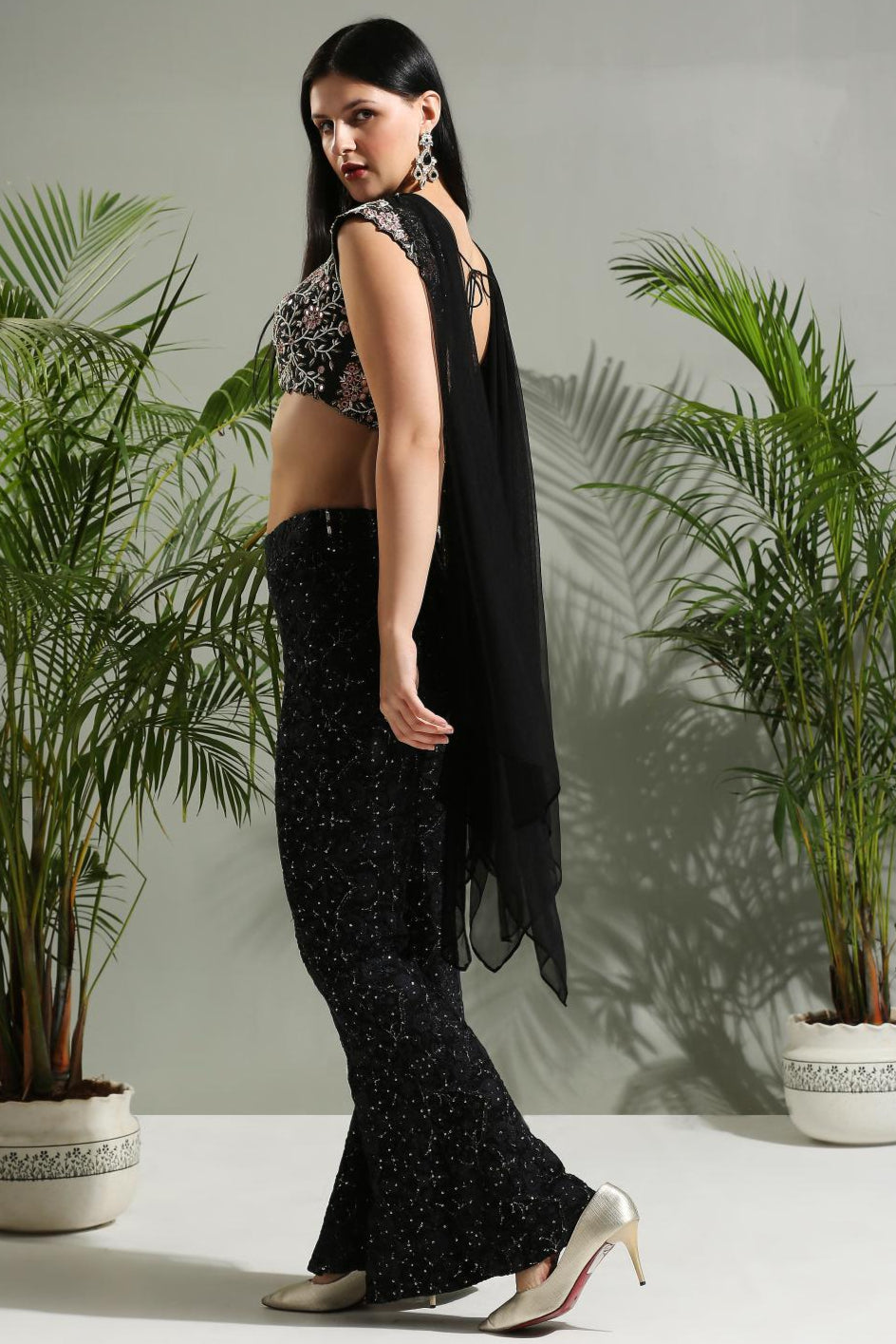 Black thread and mirror hand embroidered sunset bloom palazzo set