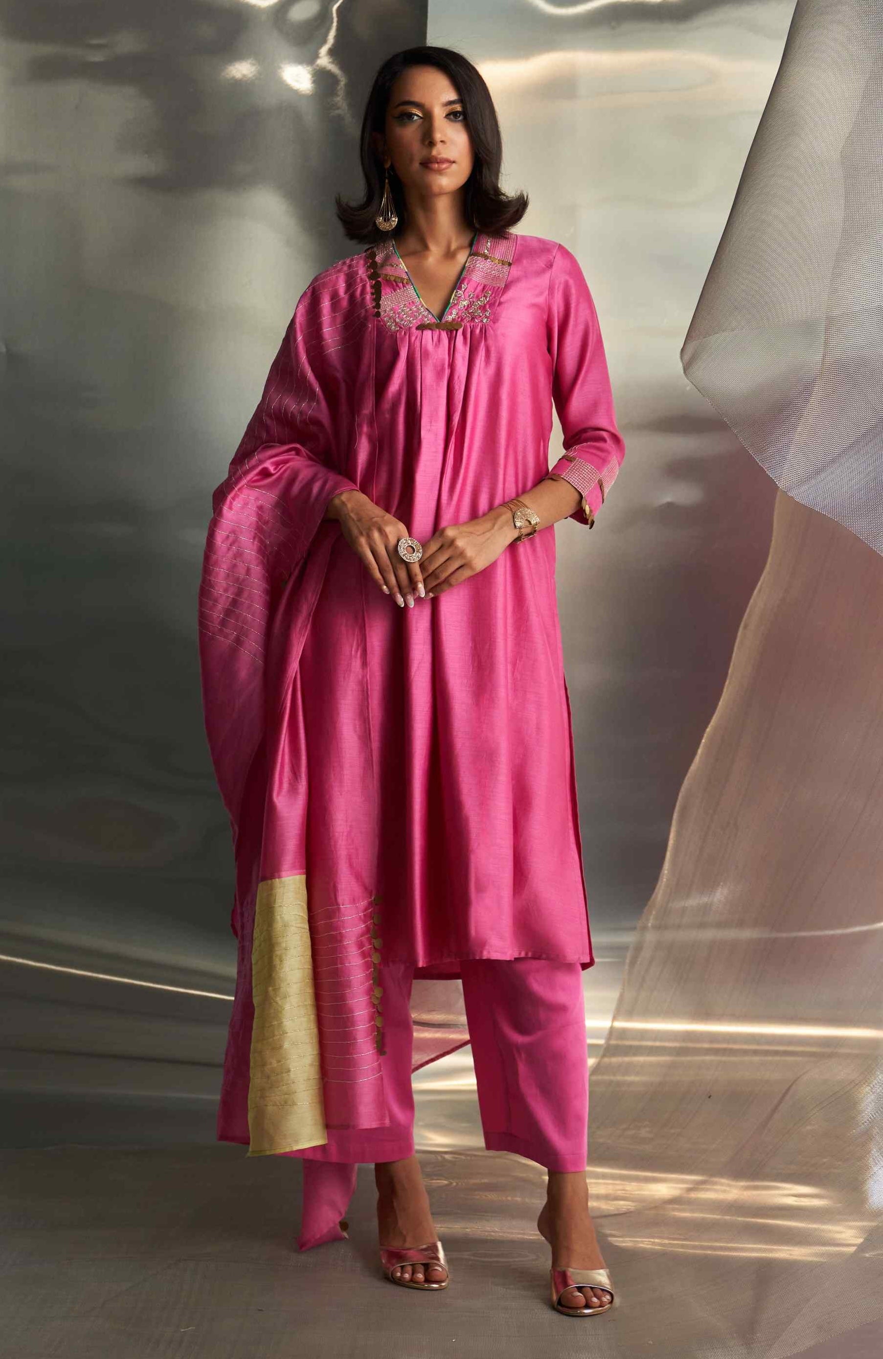Fabric: Kurta- chanderi, lining- cotton, pant- cotton, dupatta- chanderi