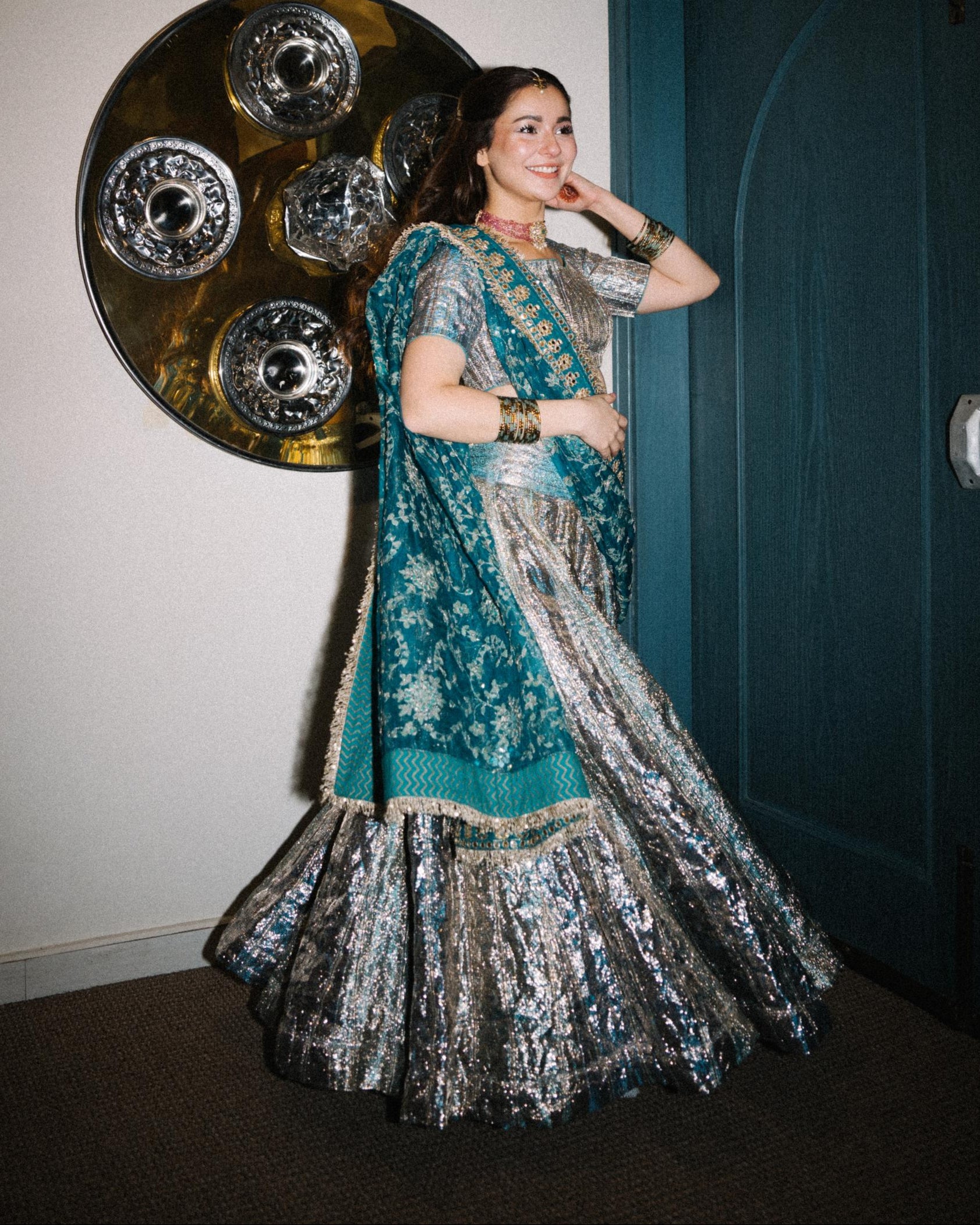 This blue lampi lehenga is paired with a matching square-neck blouse, exuding timeless elegance. Highlighted with an organza dupatta adorned with intricate mirror work and fine kiran detailing, this ensemble blends traditional charm with modern sophistication, perfect for weddings and festive celebrations.