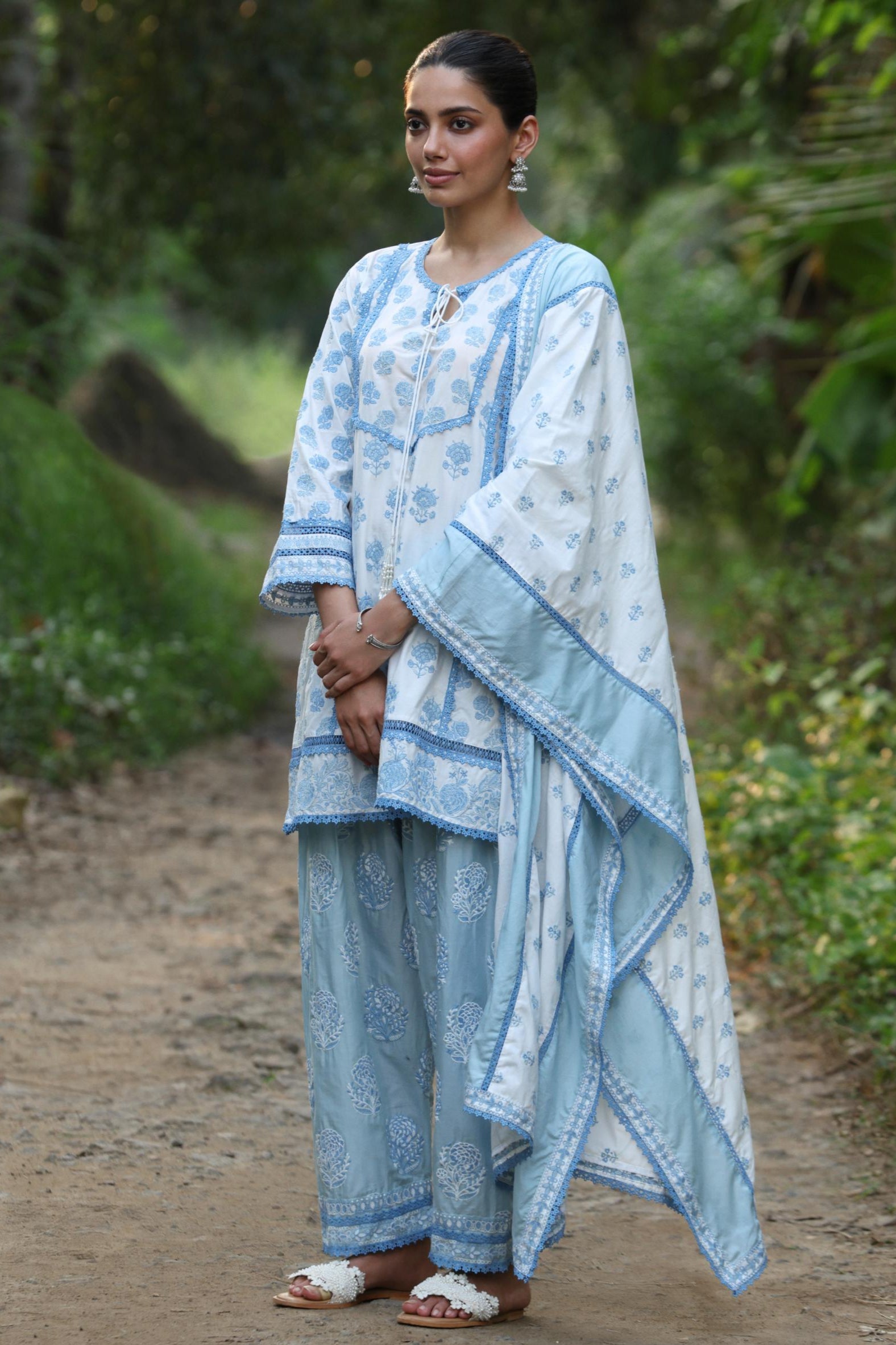 The Blue Alagi Malgudi Days Kurta Set is a nostalgic and elegant ensemble inspired by the charm of vintage India. Featuring a soothing blue palette, this kurta set draws from the timeless essence of "Malgudi Days" with intricate prints and subtle detailing that evoke stories of tradition and culture. The kurta offers a relaxed, flattering fit paired with coordinated bottoms, ensuring comfort without compromising on style. Ideal for cultural gatherings, festive celebrations, or serene daywear, this set blends heritage aesthetics with contemporary ease. A perfect choice for those who cherish storytelling through fashion and timeless Indian elegance.