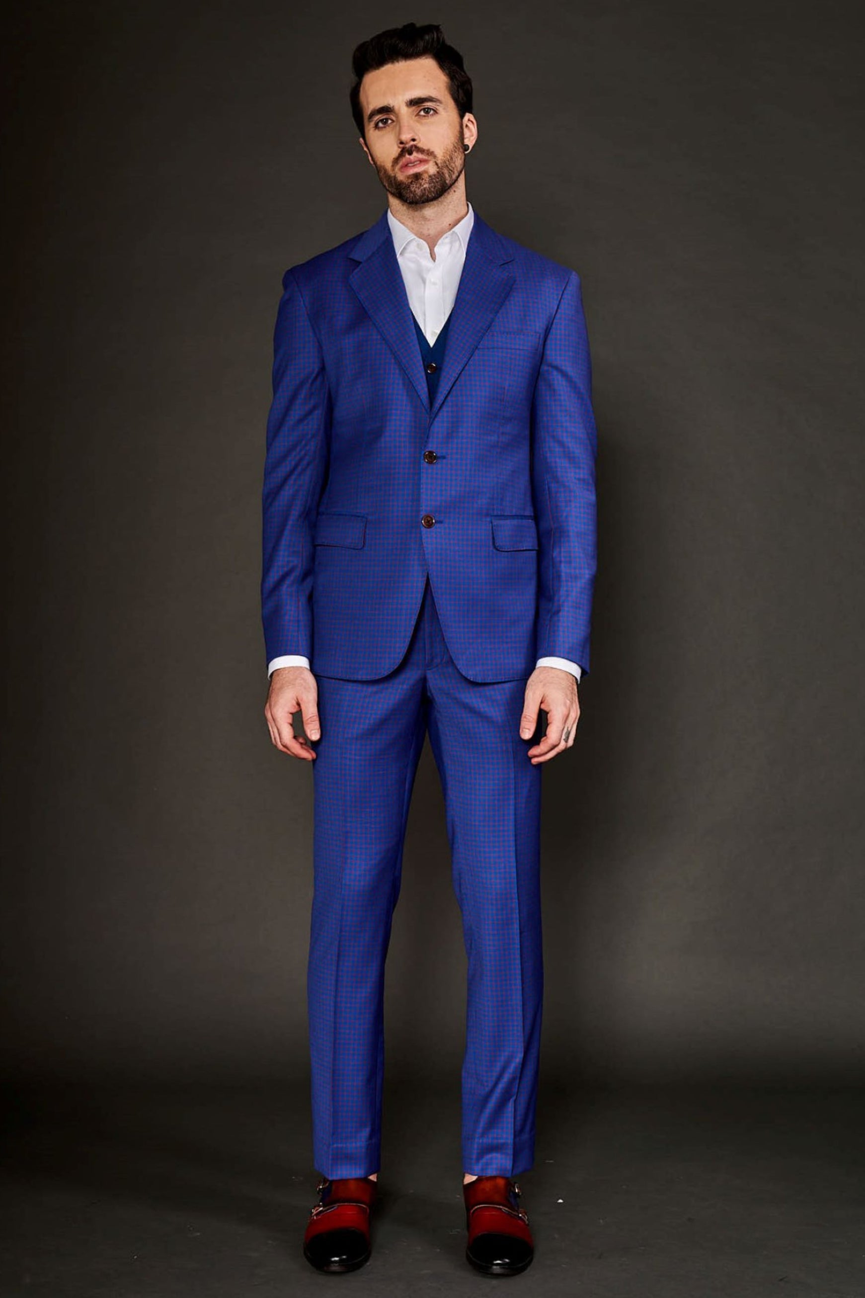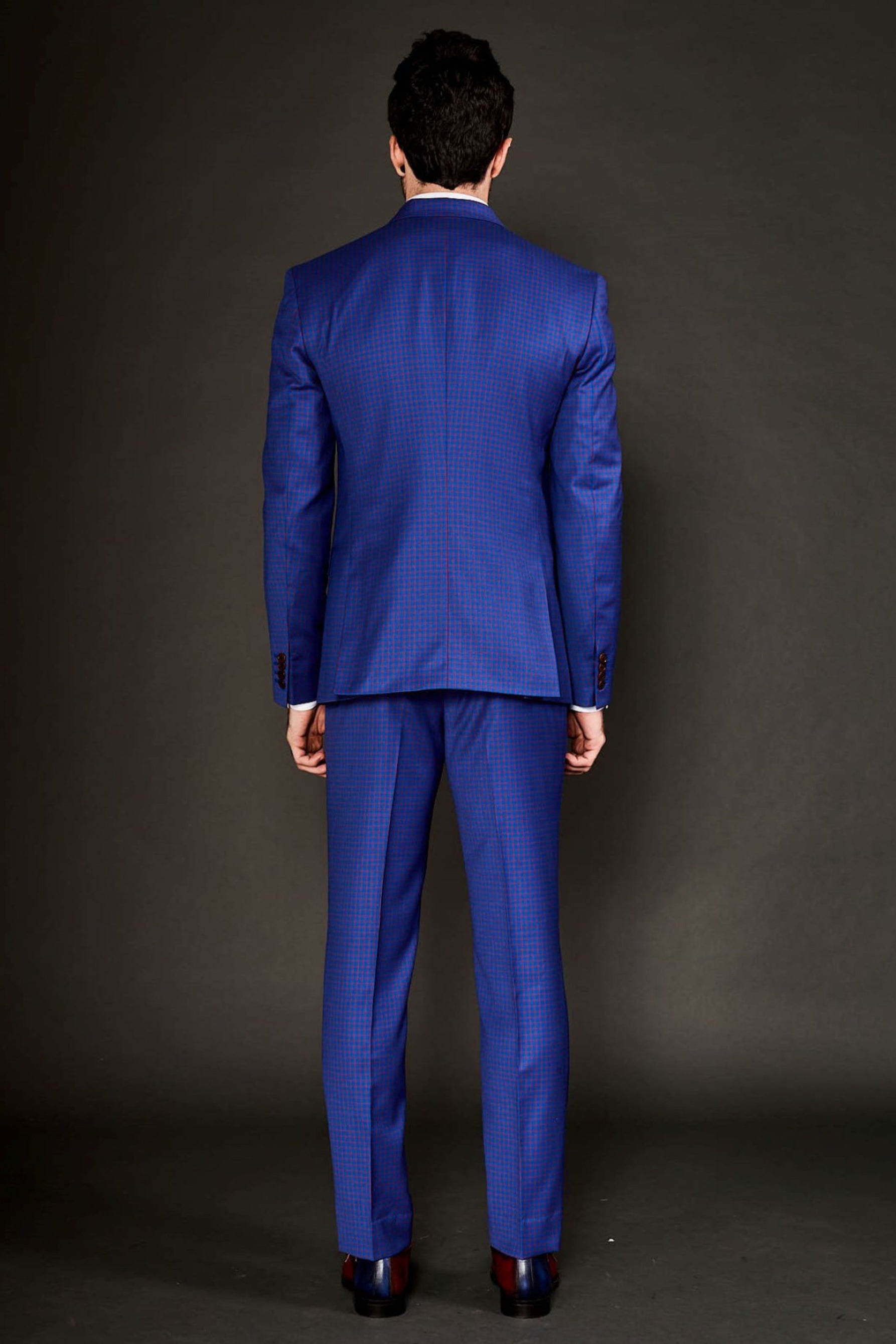 Stand out with this Blue and Red Checks Notch Lapel Suit. Featuring a bold check pattern in vibrant blue and red tones, this suit combines modern flair with classic tailoring. The notch lapels and slim fit ensure a sharp, flattering silhouette, perfect for both business meetings and social gatherings. Pair with a crisp white shirt for a standout ensemble.