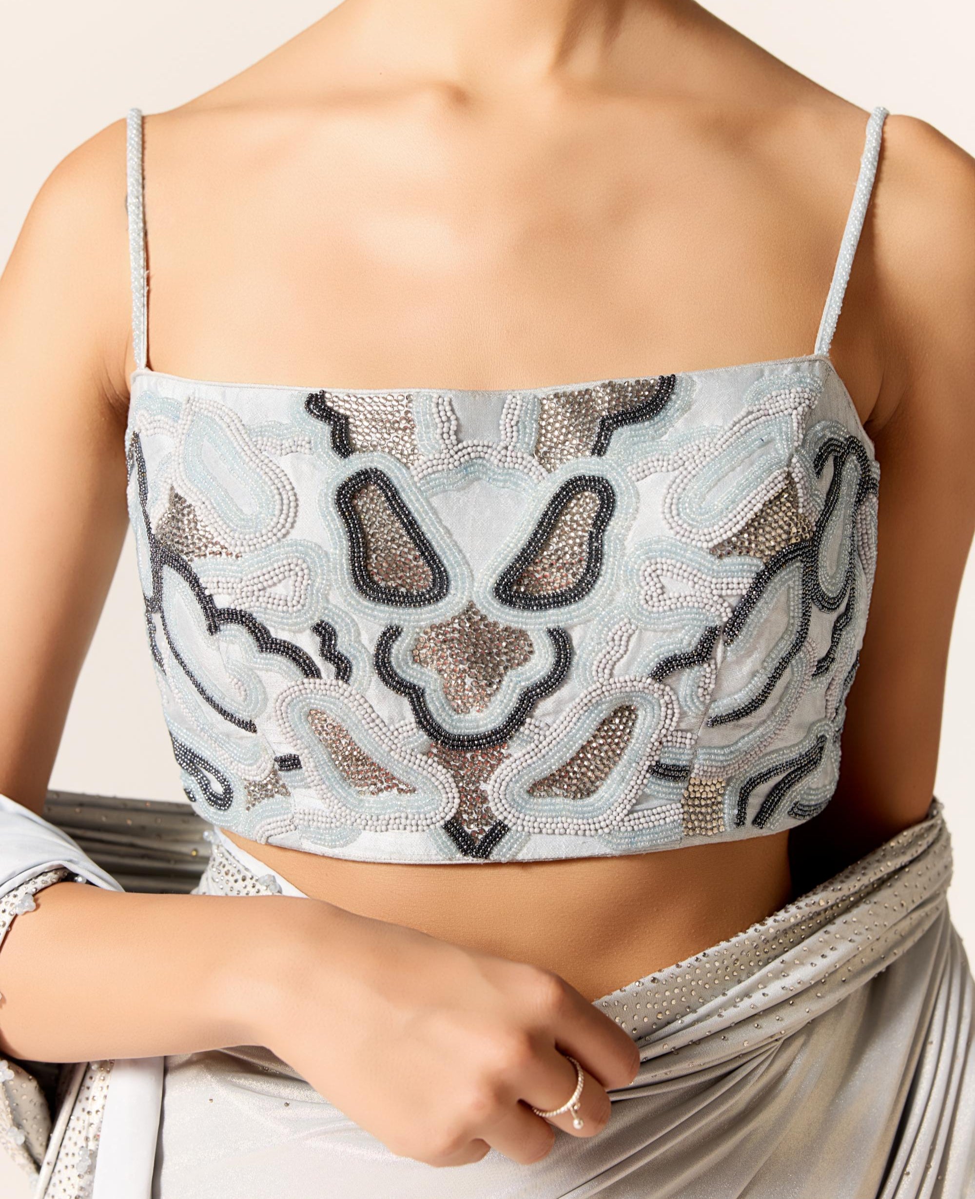Components: 2 pieces (Bustier, saree)