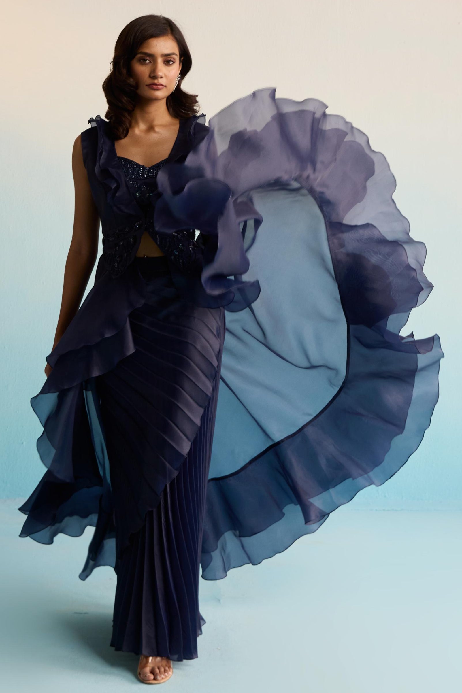 Sophisticated and statement-making, the Blue Bahaar Maris Jacket Set redefines festive dressing with a structured yet graceful silhouette. Crafted in a serene blue tone, this ensemble features a finely embroidered jacket layered over a sleek blouse and coordinated bottoms, blending traditional craftsmanship with contemporary styling. Ideal for cocktail soirées, wedding receptions, or modern festive events, the Blue Bahaar Maris Jacket Set is for the woman who commands attention with elegance and individuality.