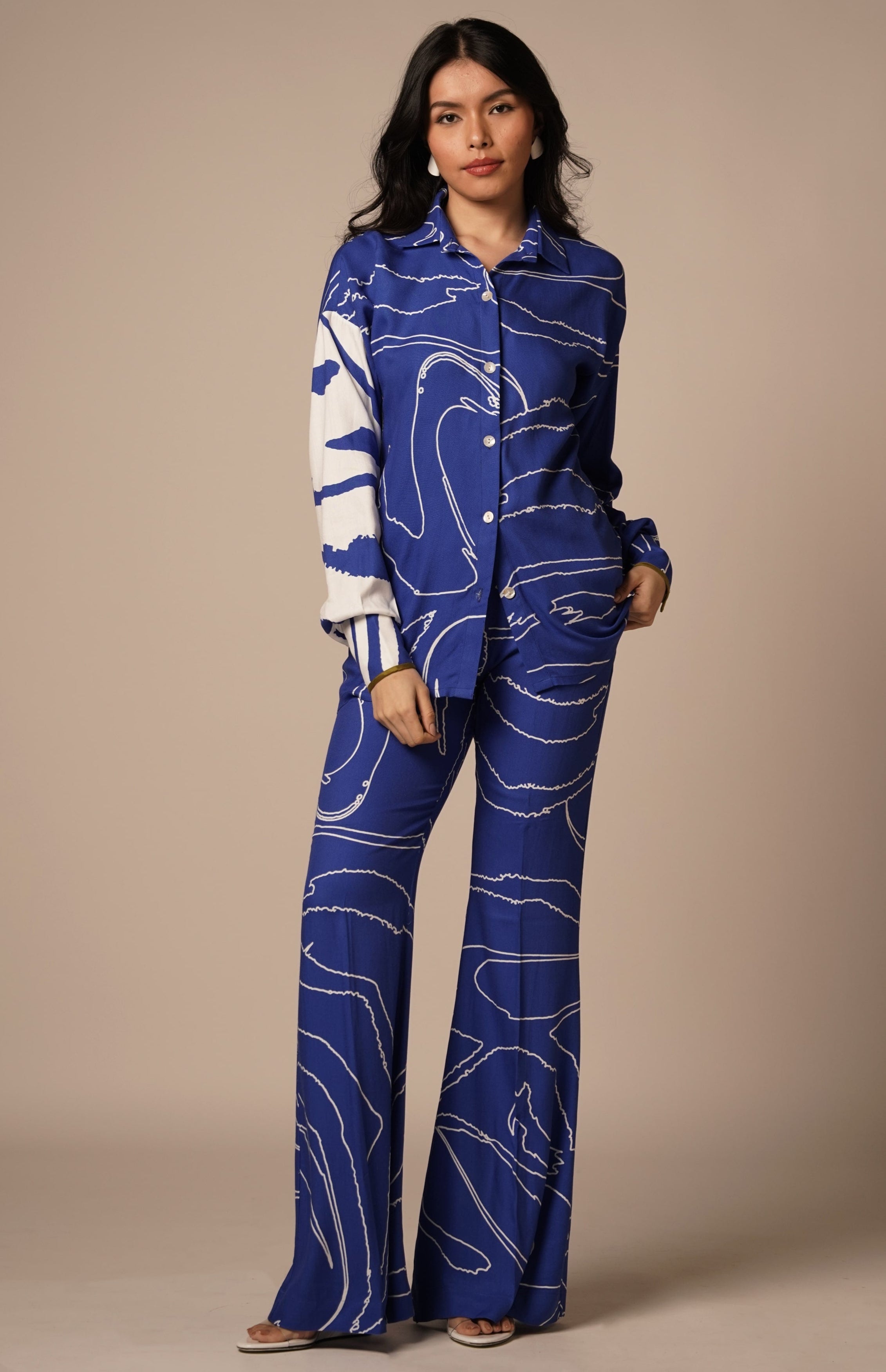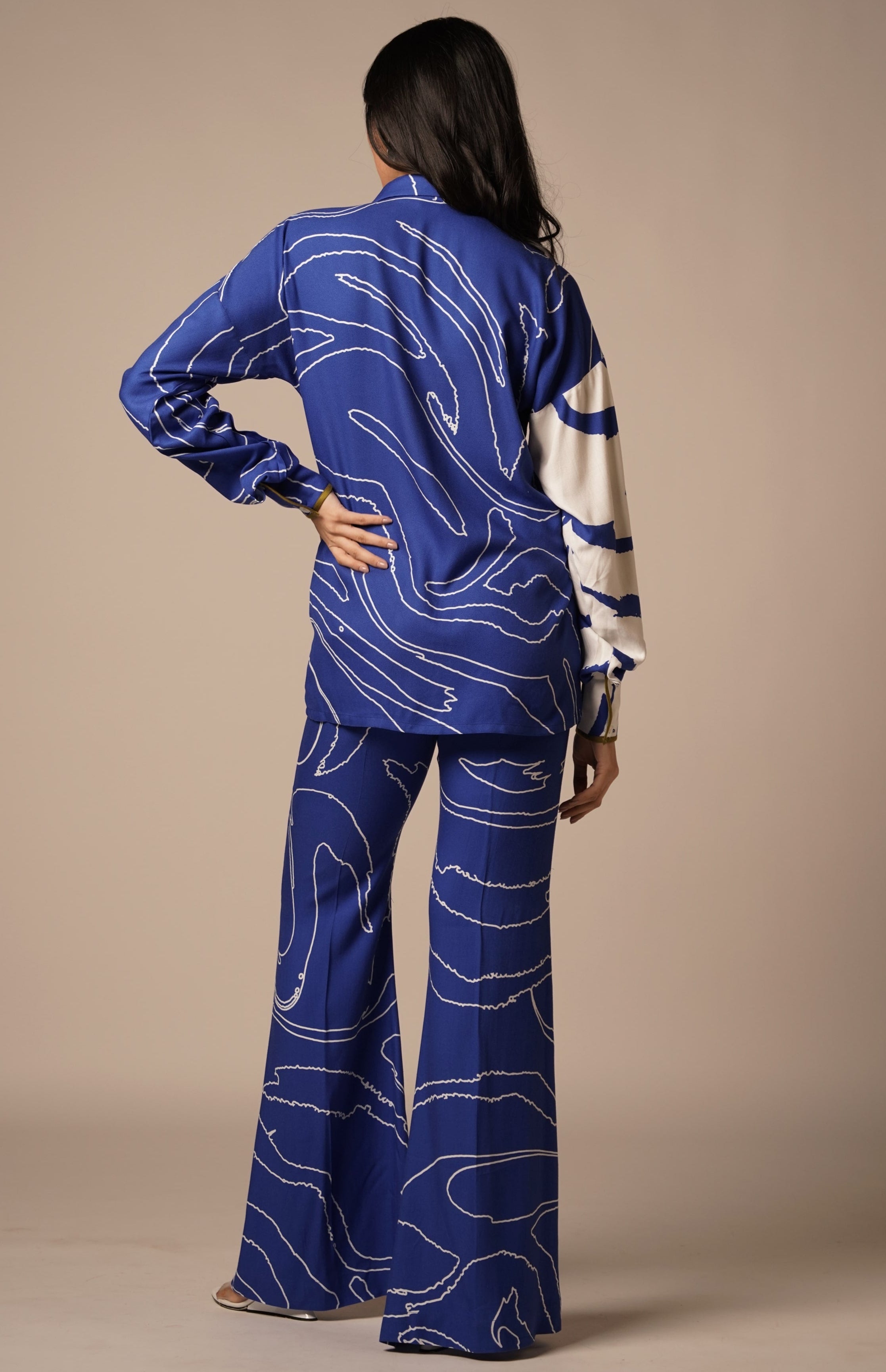 Effortlessly modern with a touch of retro charm, the Blue Cari Flared Trouser is designed to make a statement in subtle sophistication. Tailored in a rich blue tone, its high-rise waist and fluid flare create a flattering silhouette that moves gracefully with you. Ideal for work-to-evening transitions, travel looks, or festive layering, these trousers offer versatile styling with a polished edge. Perfect for the woman who embraces minimalism with a bold, tailored twist.