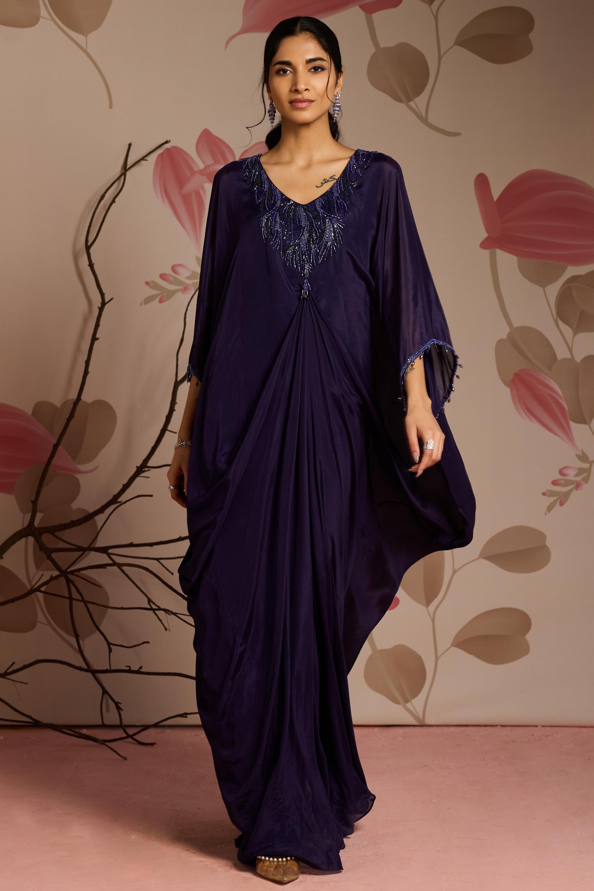 The Blue Cassia Under Bloom Kaftan is a graceful and effortless piece that combines comfort with natural beauty. Featuring a soft blue hue and subtle cassia flower-inspired details, this kaftan drapes beautifully to create a relaxed yet sophisticated silhouette. The lightweight fabric ensures all-day comfort, making it perfect for resort wear, casual outings, or evening relaxation. The floral accents add a touch of nature's charm, while the fluid design exudes femininity and elegance. A perfect choice for those who appreciate easy style with a fresh, nature-inspired twist.