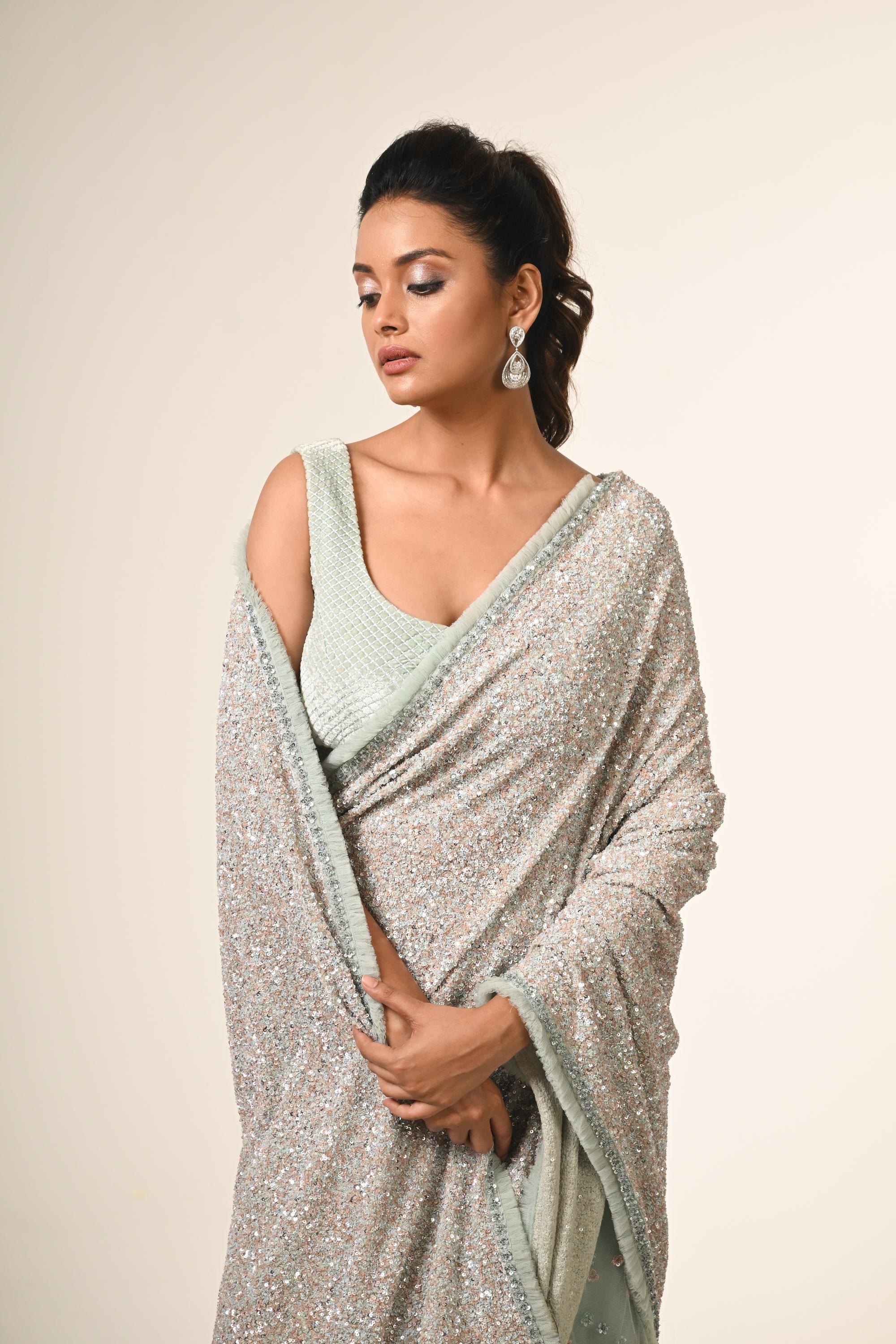 Elegant and exquisitely detailed, the Blue Cutdana Saree is a timeless classic reimagined with artisanal brilliance. Crafted in a rich blue hue, the saree features intricate cutdana embroidery that catches the light with every movement—adding subtle shimmer and texture. Its fluid drape and sophisticated detailing make it an ideal choice for evening soirées, receptions, or festive celebrations. The Blue Cutdana Saree is perfect for those who appreciate fine craftsmanship wrapped in understated glamour.