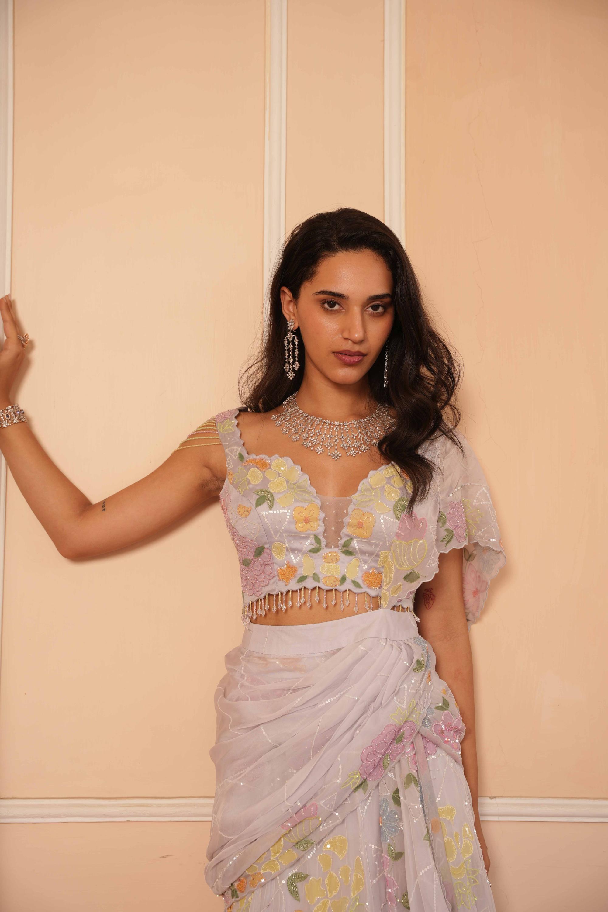 Components: 3 pieces (Drape, blouse, skirt)