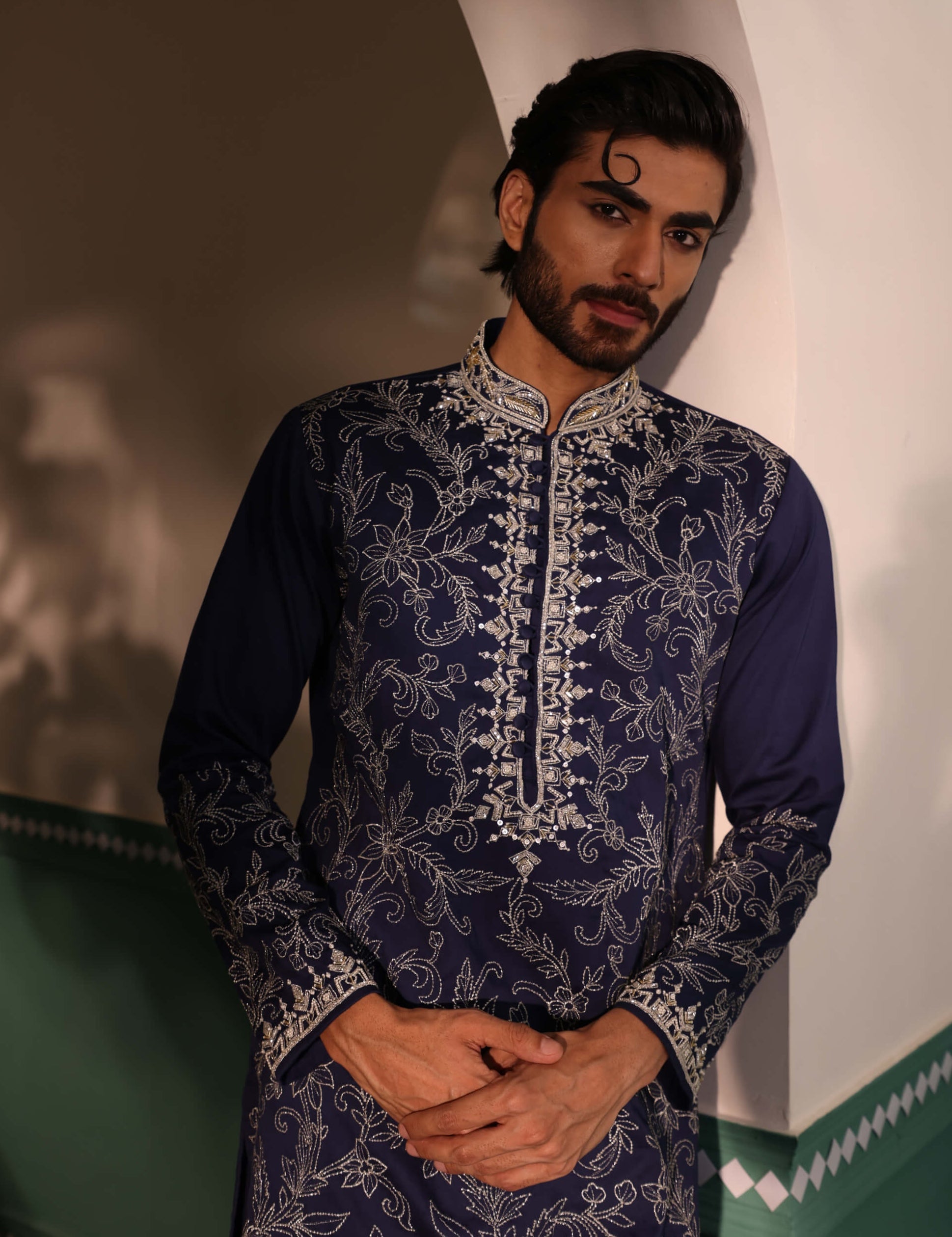 Elevate your style with the Gul Kurta, crafted from sumptuous silk viscose fabric for a refined touch. This elegant kurta boasts a concealed placket for a sleek, modern look, while intricate hand embroidery adds a layer of sophistication. Adorned with exquisite beading, threadwork, sequins, and cutdana embellishments, each detail reflects exceptional artisanal skill. The kurta also features a comfortable inside lining, ensuring a perfect fit and added luxury. Ideal for special occasions, the Gul Kurta is a testament to timeless craftsmanship and contemporary elegance.