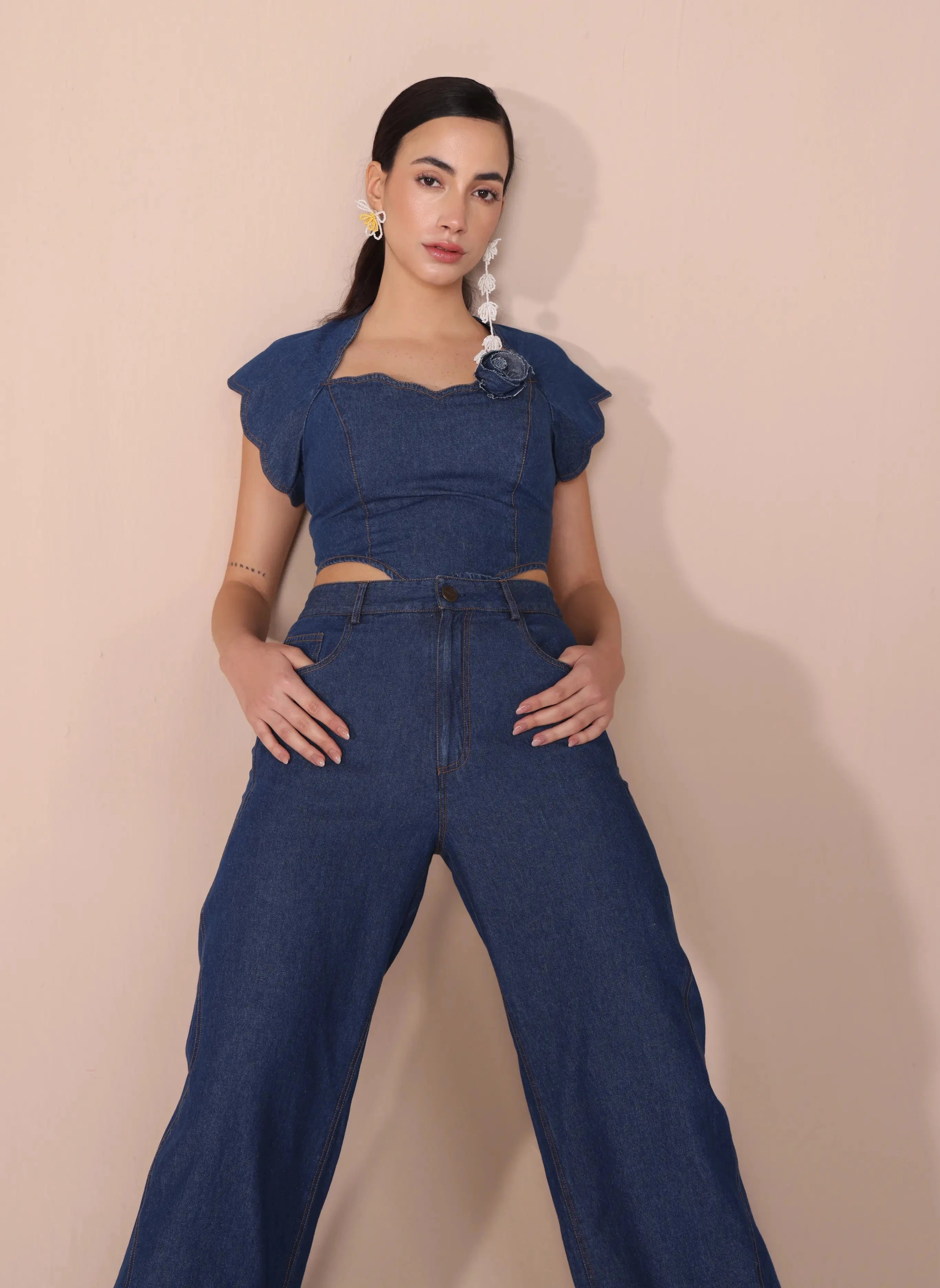 The Blue High Waist Denim offers a flattering, comfortable fit with a timeless appeal. Crafted from premium denim, these high-waisted jeans elongate the legs and define the waist, creating a sleek, stylish silhouette. The rich blue wash makes them versatile for both casual and dressy looks, whether paired with a tucked-in blouse or a simple tee. Perfect for any season, these high-waist denim jeans are a must-have addition to your wardrobe for everyday chic.