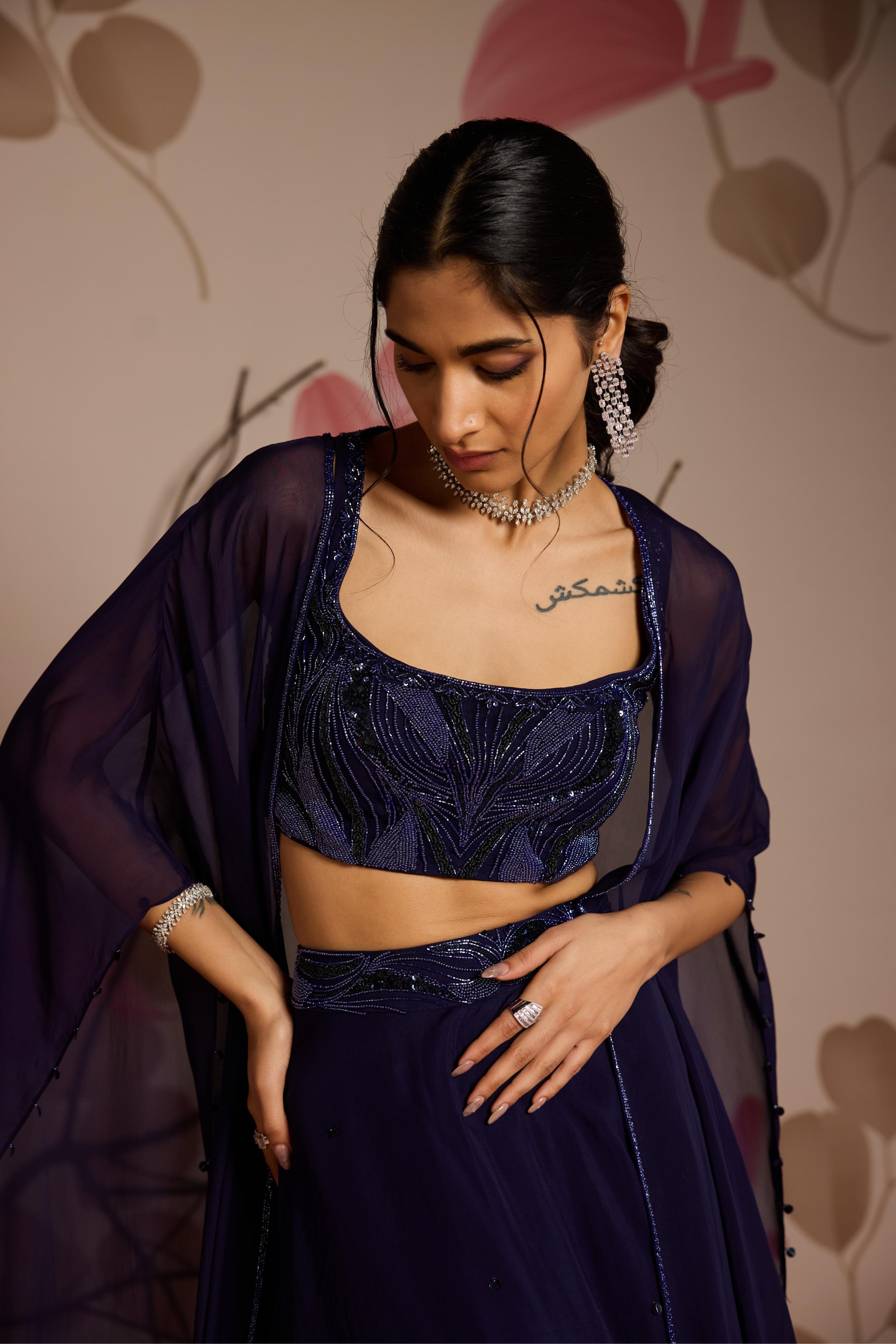 The Blue Ivy Under Bloom Lehenga Set is an enchanting ensemble that beautifully combines rich blue tones with delicate ivy-inspired floral details. The lehenga features a flowing, graceful silhouette that moves with ease, paired with a matching blouse and lightweight dupatta. The intricate floral accents add a natural, romantic touch, making this set perfect for weddings, festive celebrations, or special occasions. The soft yet striking blue hue exudes sophistication, while the design offers a modern twist on traditional elegance. A perfect choice for those who seek a refined, nature-inspired look with timeless beauty