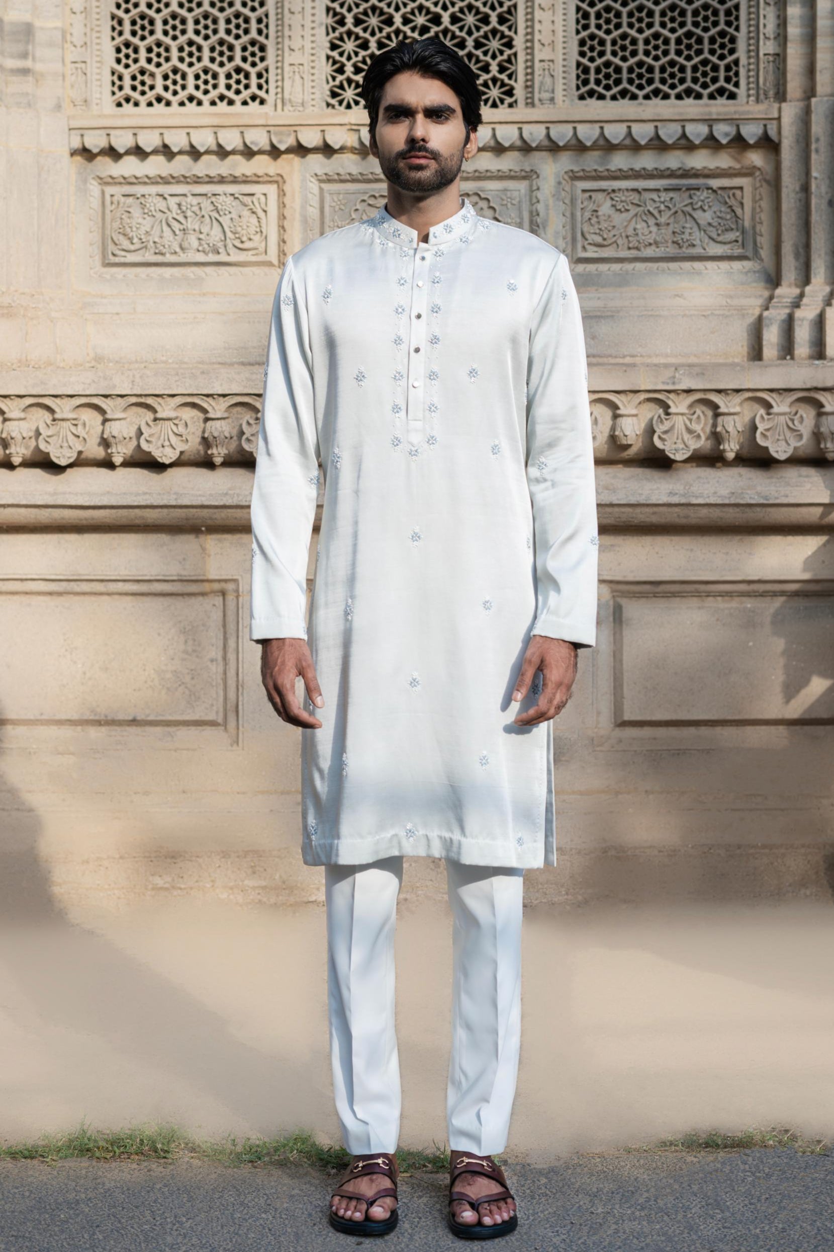 Inspired by the calm flow of water, the Blue Nirjhar Kurta Set brings together fluid design and timeless elegance. Crafted in a rich blue tone, the kurta features subtle texture or embroidery reminiscent of gentle ripples, paired with tailored bottoms that offer comfort and sophistication. Ideal for festive gatherings, cultural ceremonies, or intimate weddings, this set is perfect for the modern man who values tradition with a contemporary aesthetic. The Blue Nirjhar Kurta Set reflects quiet strength and refined style.
