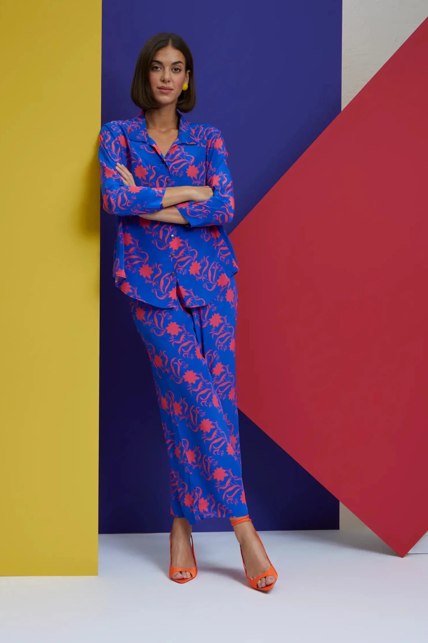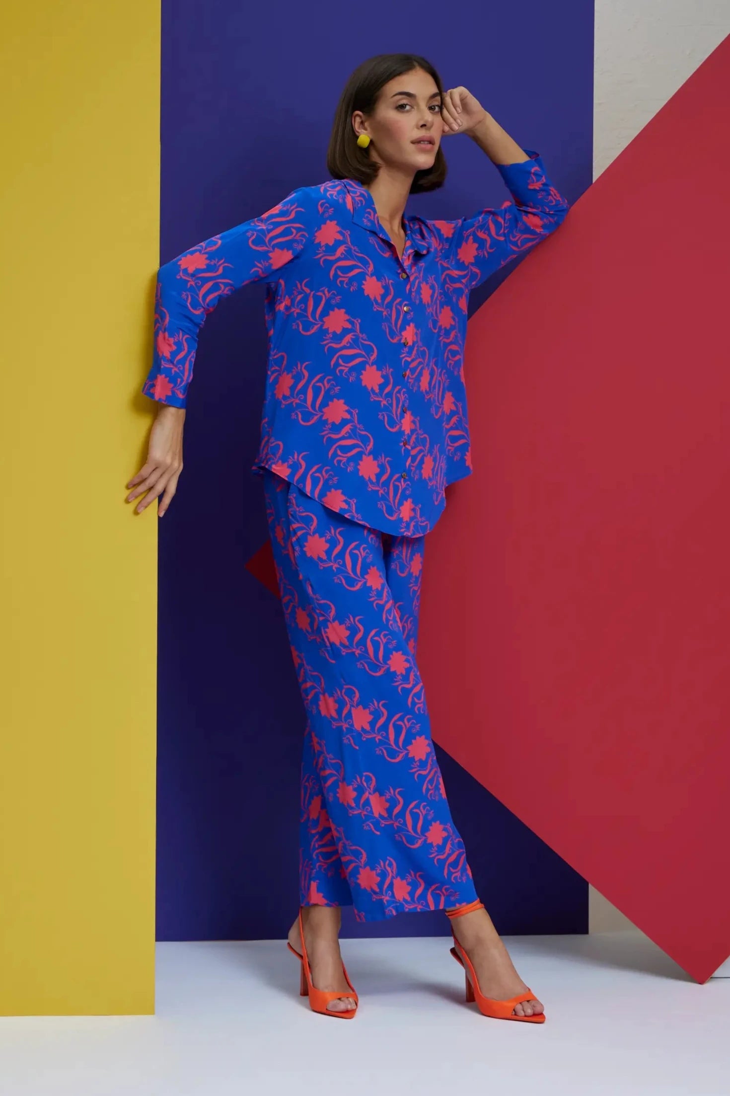 Embrace laid-back style with this blue oversize shirt with pants. The relaxed, oversized fit of the shirt offers ultimate comfort, while the matching pants complete the look for a coordinated, casual vibe. Perfect for everyday wear or weekend outings, this effortlessly stylish set combines a cool, contemporary feel with versatility and ease.