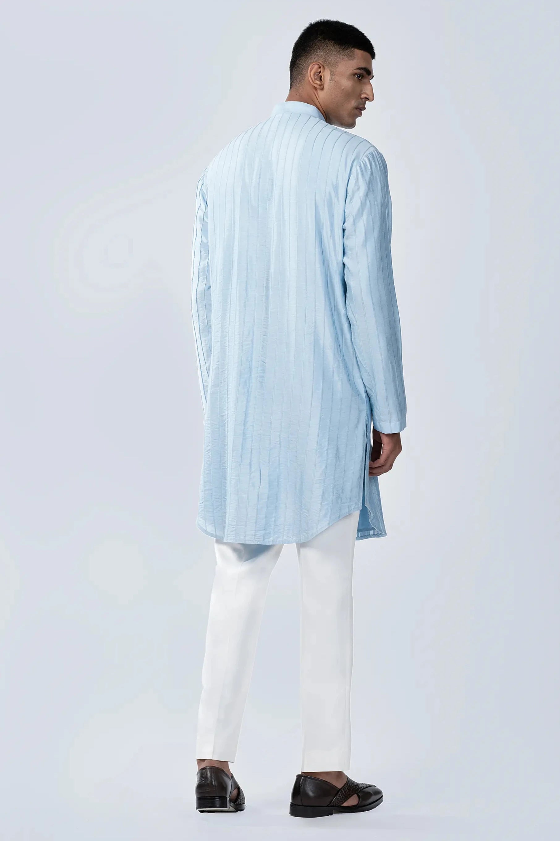 Embrace refined simplicity with the Blue Pintuck Kurta, a classic piece that combines traditional style with a contemporary twist. The rich blue color sets the stage for understated elegance, while the pintuck detailing adds texture and sophistication to the design. Ideal for both casual gatherings and more formal events, this kurta ensures comfort without compromising on style.