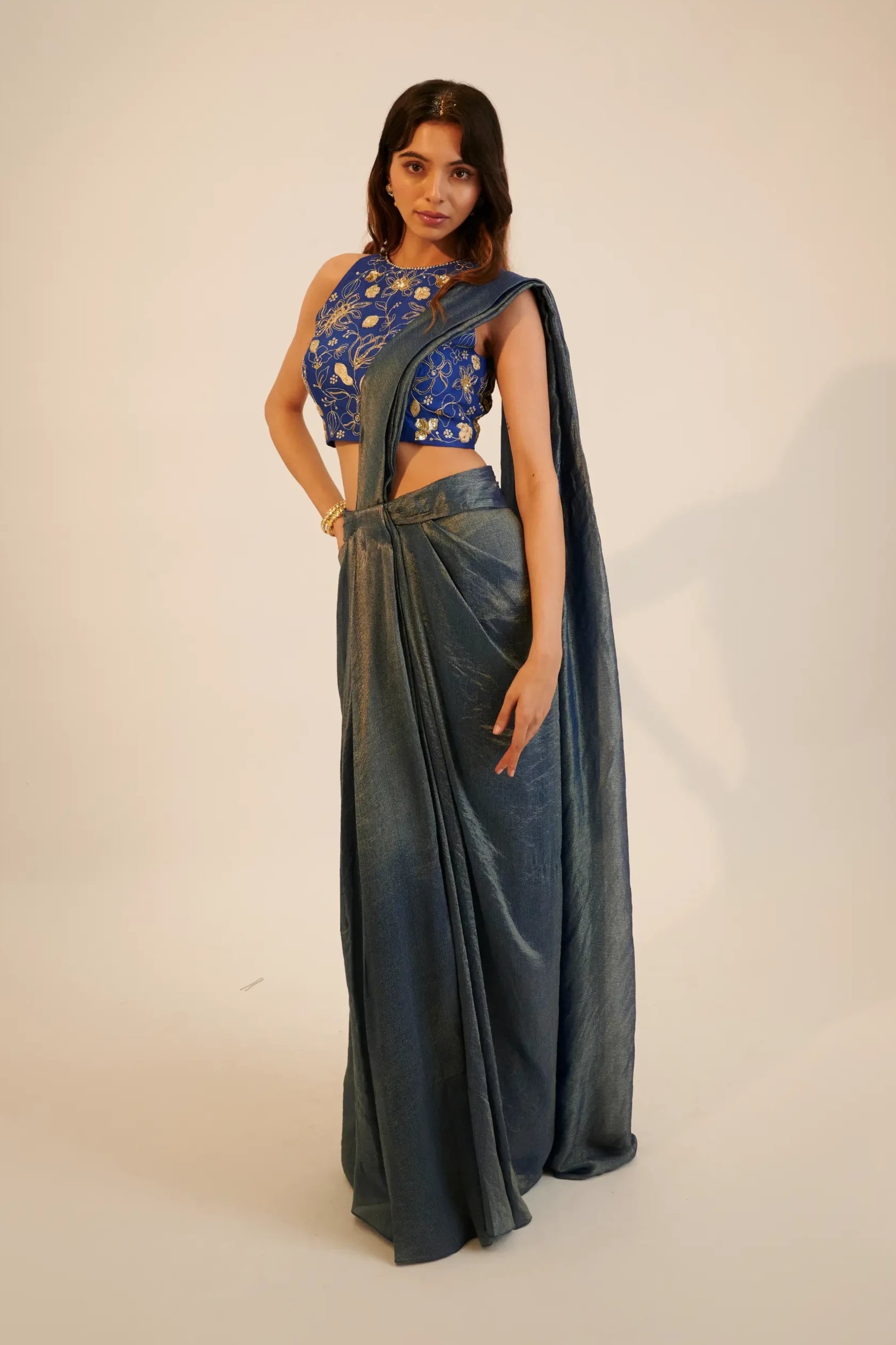 Discover effortless elegance with our stunning blue pre-draped saree, designed for the modern woman who appreciates timeless style. This exquisite saree features a beautiful drape that flatters your silhouette, allowing you to embrace tradition without the fuss of complex styling. The vibrant blue hue adds a refreshing touch, while the accompanying blouse is intricately crafted to enhance your look. Perfect for weddings, parties, or festive occasions, this ensemble combines comfort and sophistication, making it an ideal choice for any event. Elevate your wardrobe with this chic pre-draped saree that celebrates both fashion and function.