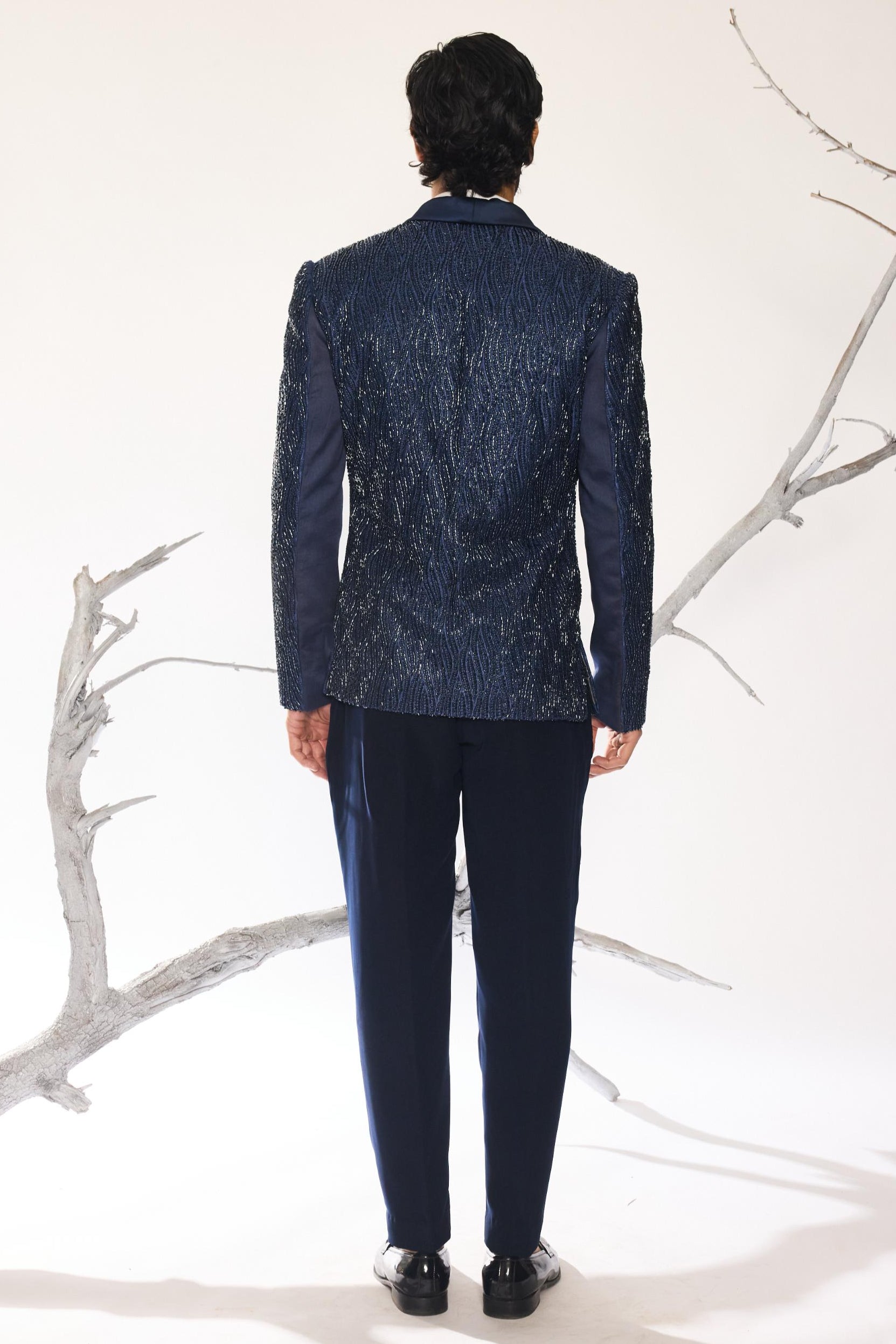 The Blue Stardust Lunar Tides Tuxedo channels the ebb and flow of moonlit waves, where elegance rises like a tide under the starlit sky. Draped in deep oceanic blue and dusted with fine stardust accents, this tuxedo captures the calm power and magnetic pull of lunar energy. With its fluid design lines and tailored structure, the ensemble is a perfect fit for receptions, formal celebrations, or celestial-themed soirées. Crafted for the modern gentleman who moves with grace but leaves impact in his wake, this piece is more than attire—it’s a lunar experience in motion.