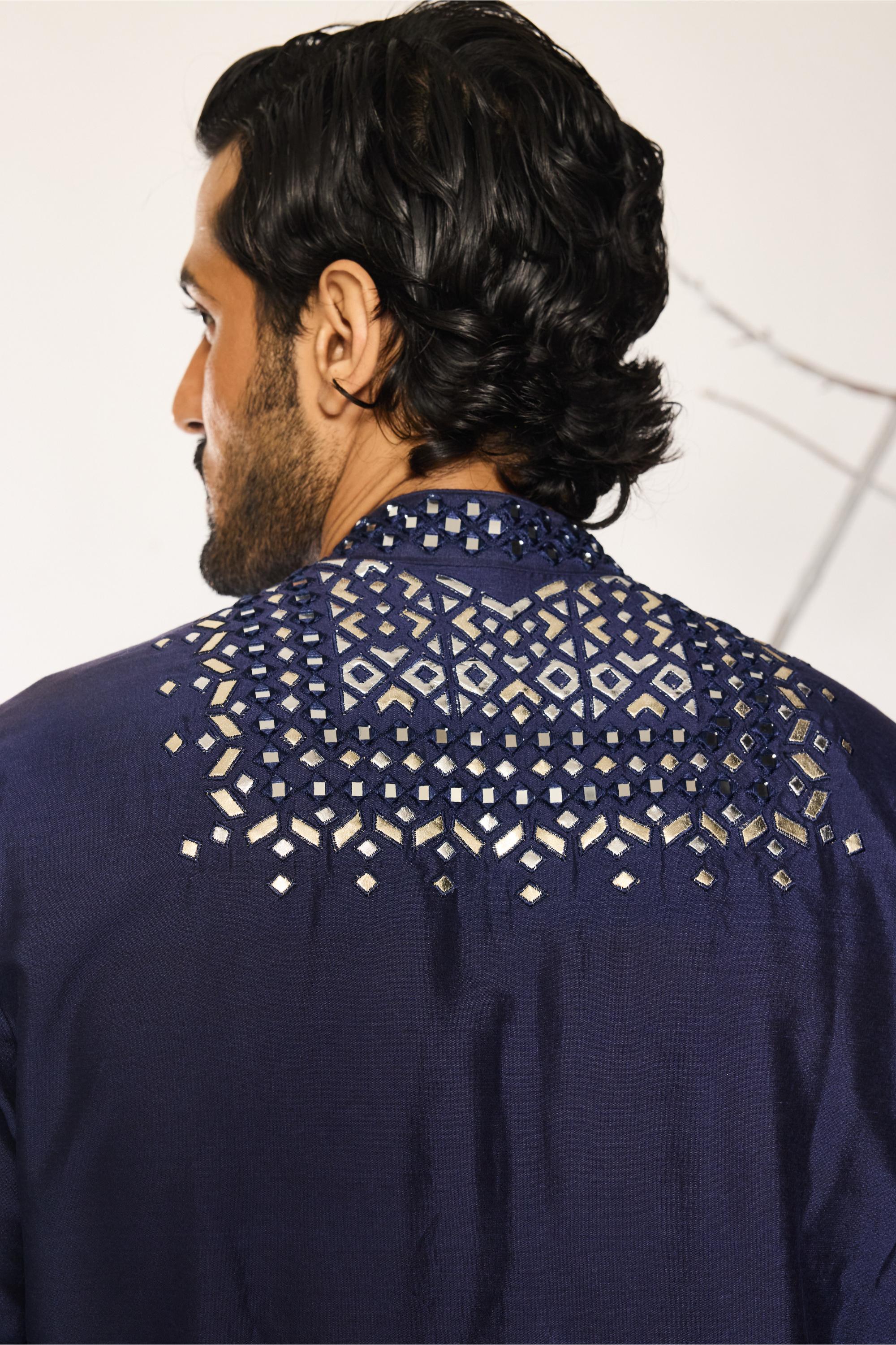 Immerse yourself in botanical serenity with the Blue Stardust Neel-Gul Kurta, featuring delicate floral motifs in tonal embroidery. Crafted in a soothing blue hue, this kurta blends tradition with understated elegance. Its soft texture and tailored fit make it ideal for festive days, poojas, or intimate celebrations. Pair it with ivory churidar or tapered pants for a graceful ensemble that feels both rooted and refined.