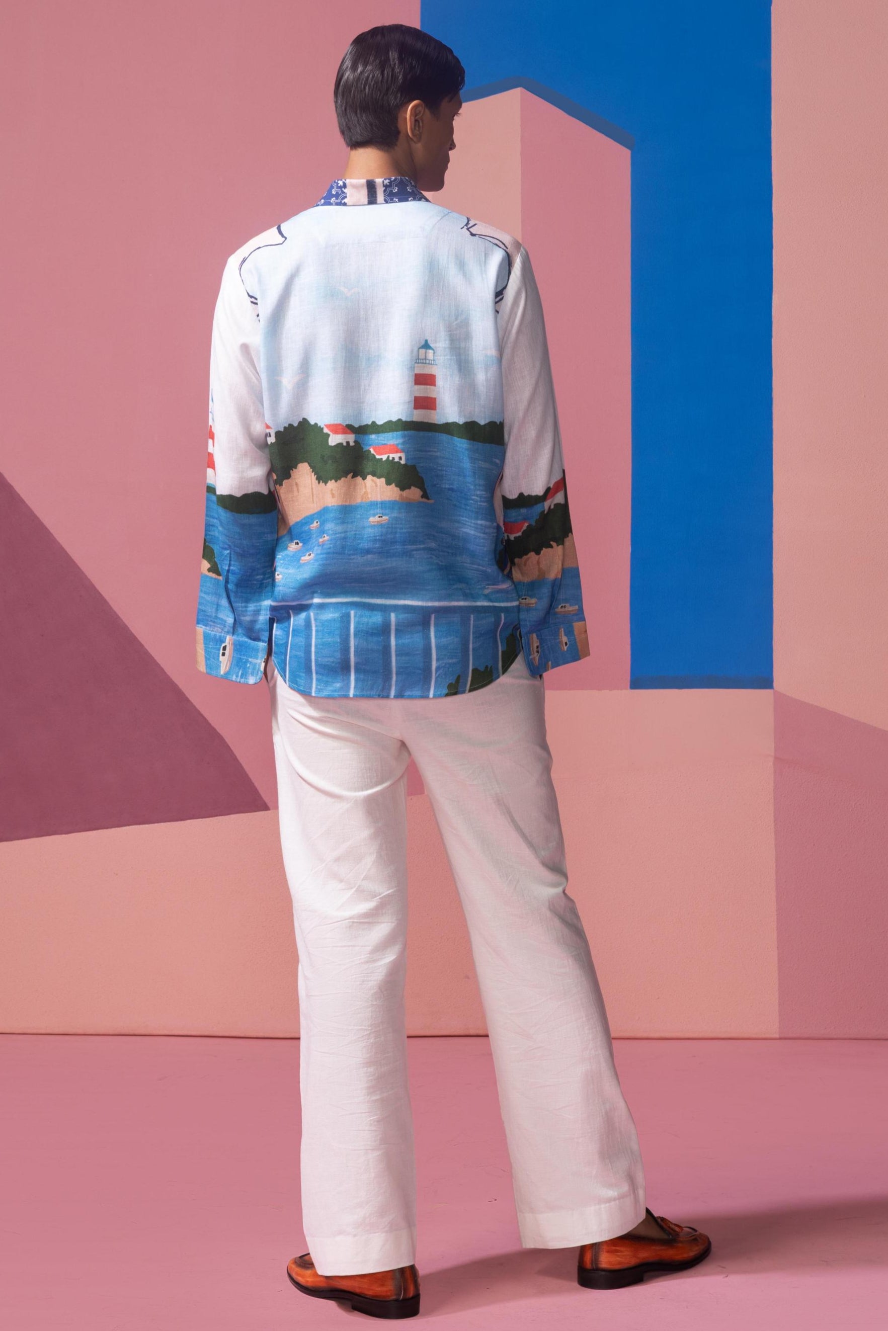 The Blue The Monkey Gate Postcard Full Sleeve Shirt is a playful and unique piece that combines bold colors with whimsical charm. Featuring a vibrant blue base and a monkey gate-inspired print, this shirt brings a sense of adventure and curiosity to your wardrobe. The full-sleeve design offers comfort and style, making it perfect for layering or wearing on its own. Ideal for those who appreciate fun, nature-inspired designs with a touch of personality, this shirt adds a fun and adventurous flair to your look. A perfect choice for those who love bold prints and a playful twist on classic style.