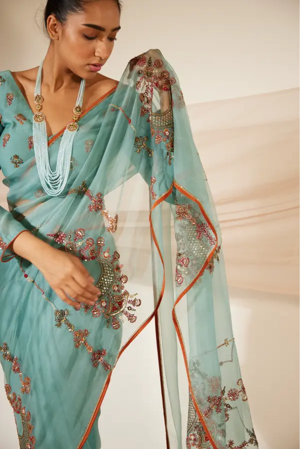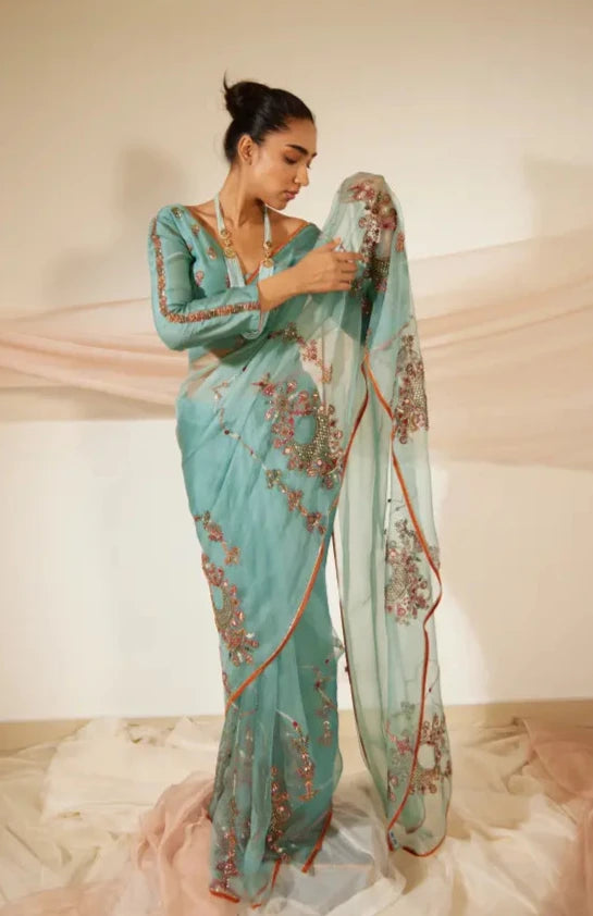 Fabric: Saree - Organza silk, Blouse piece - Chandheri silk