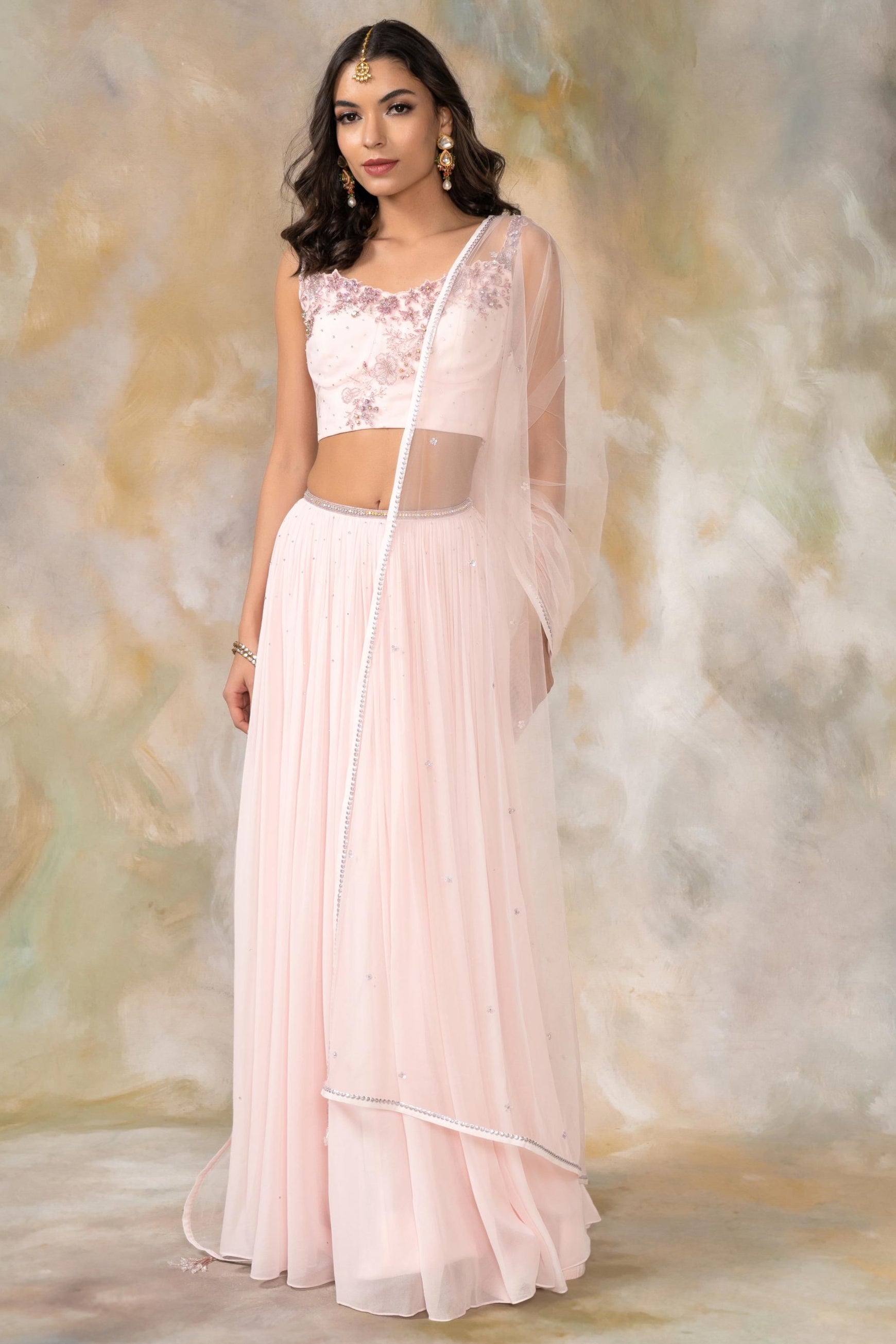 Blush pink katdana and sequin embellished lehenga set
