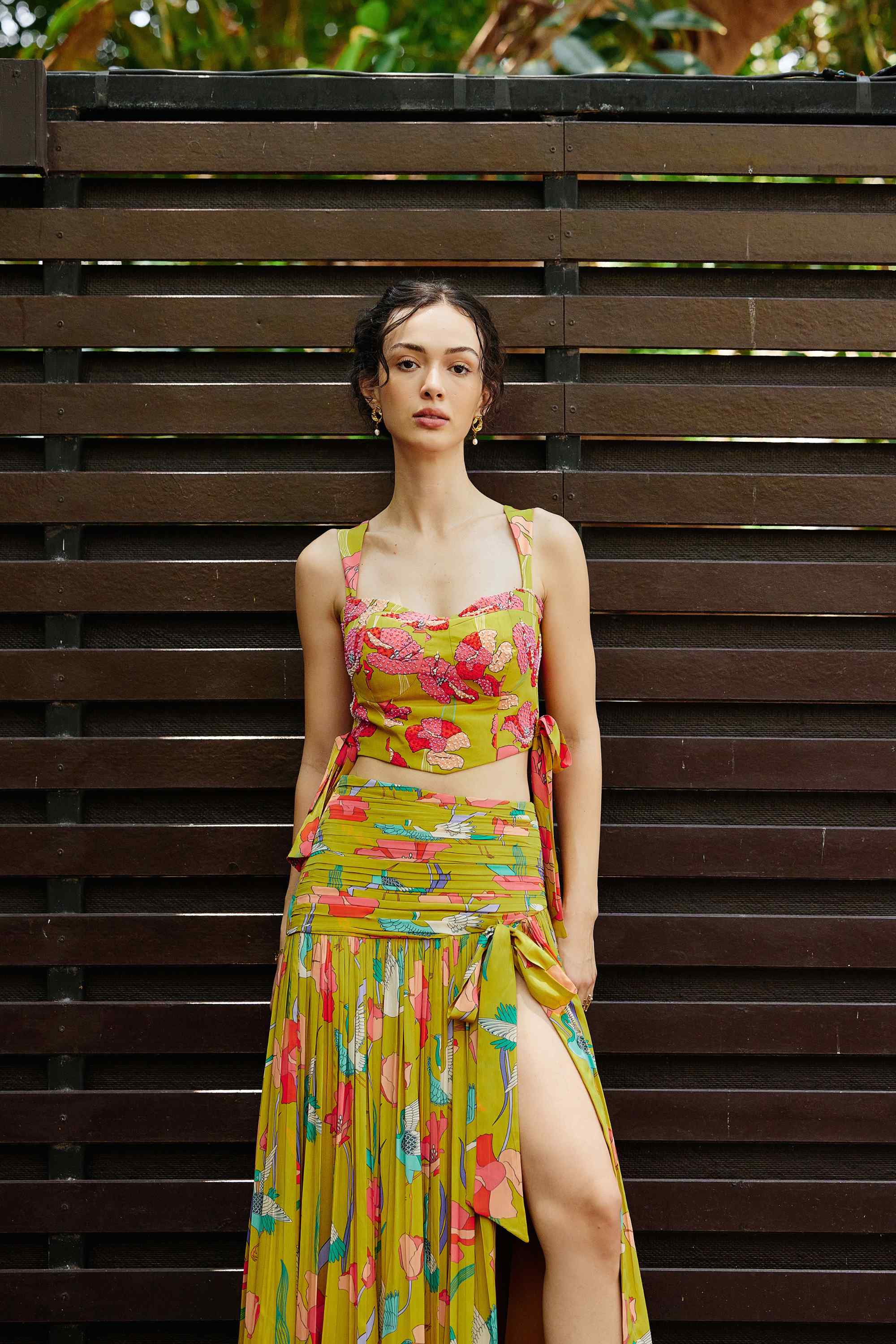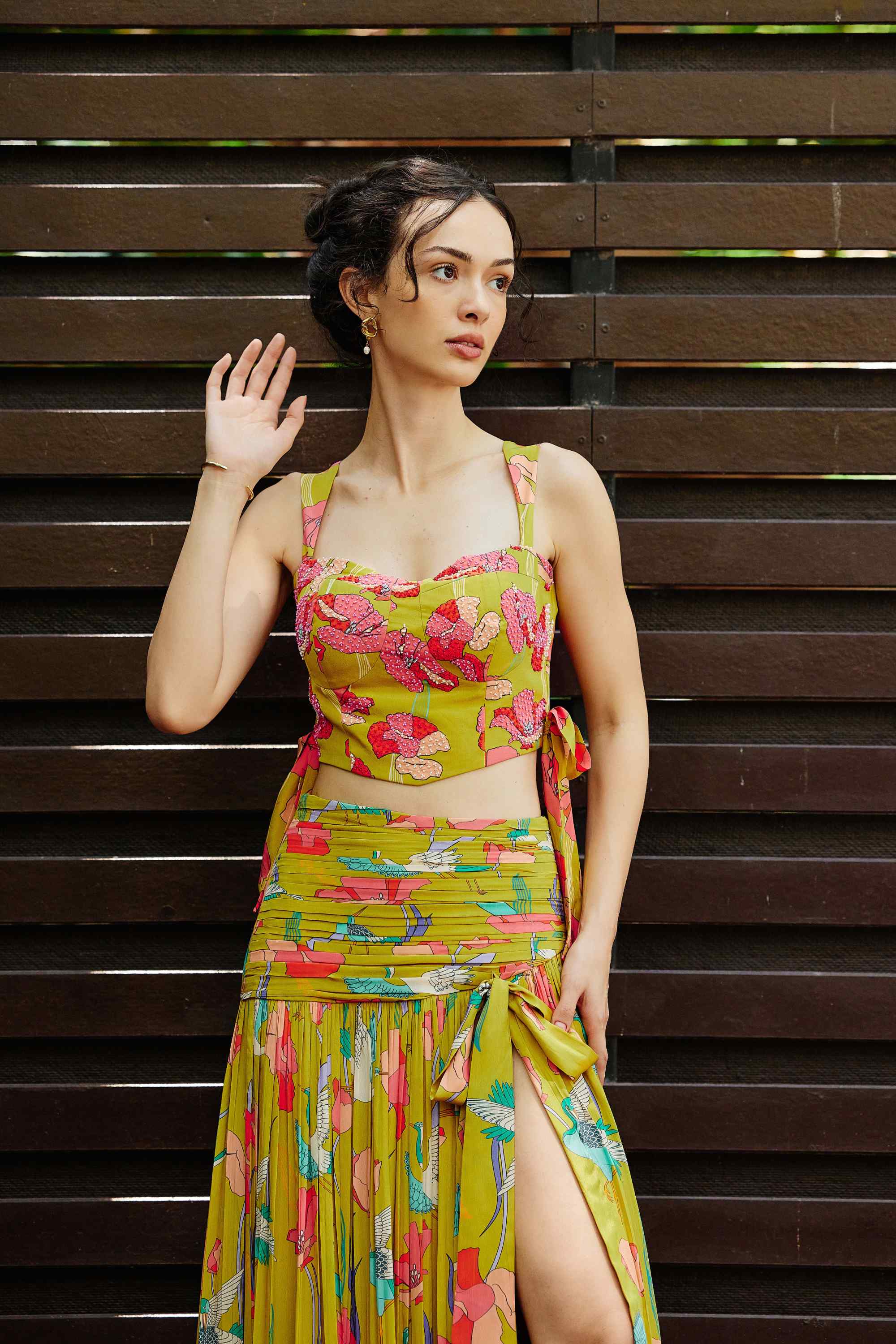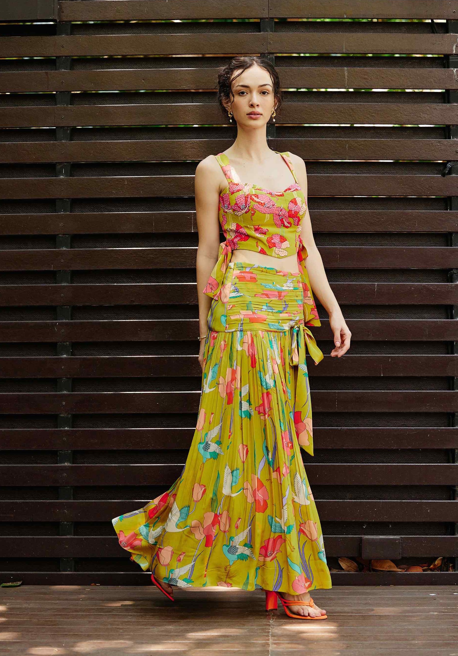 Introducing the Botanique Mustard Bustier with Skirt, a striking ensemble that marries bold color with sophisticated design. The mustard bustier exudes confidence with its flattering fit and contemporary cut, providing a chic and eye-catching foundation. Paired with a complementary skirt, this outfit offers a seamless blend of elegance and modern style. The high-quality fabric ensures a comfortable, breathable experience, while the vibrant mustard hue adds a touch of warmth and personality to your look. Perfect for upscale events, evening soirées, or stylish day outings, the Botanique Mustard Bustier and Skirt set is a versatile choice that highlights your unique fashion sense with refined grace.