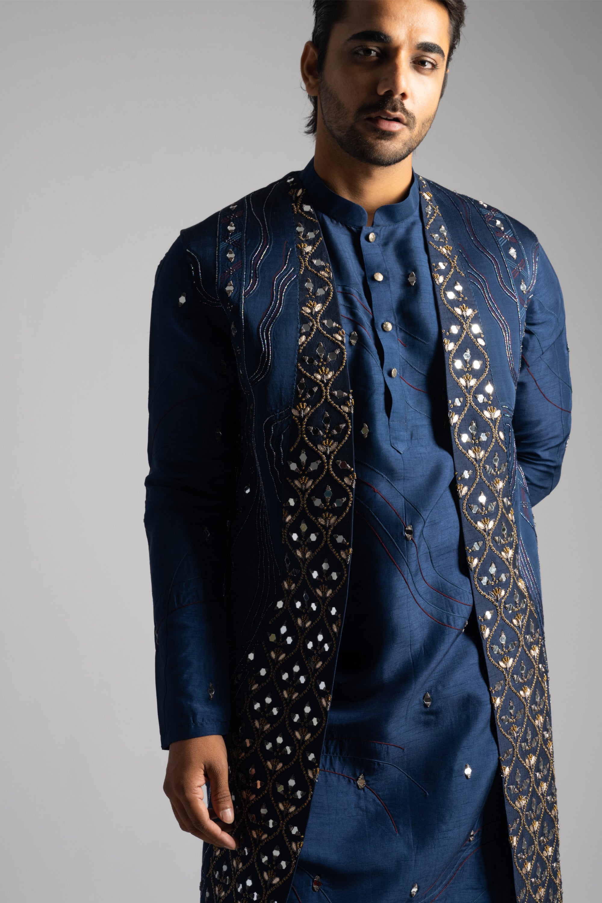 Step out in style with this trance print dupion silk pathani kurta. The unique print adds a modern twist, while the luxurious dupion silk fabric ensures a comfortable and sophisticated look.