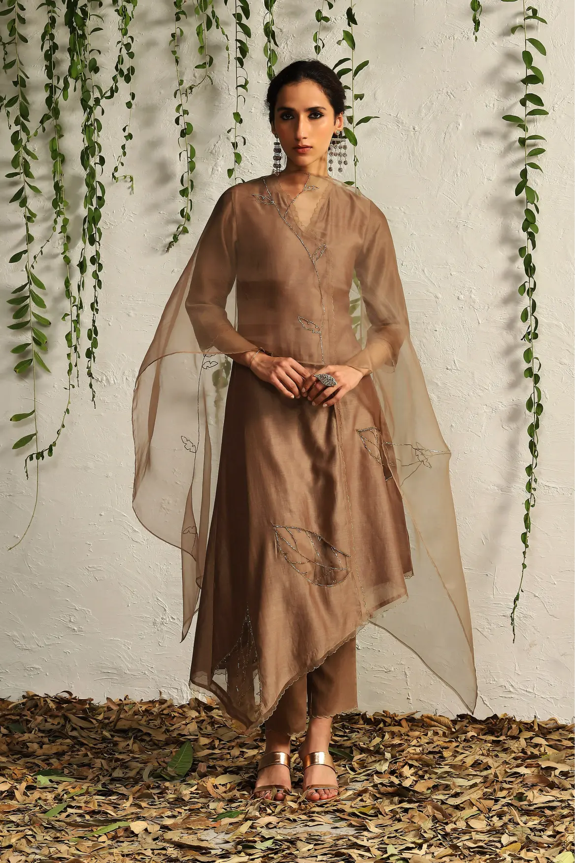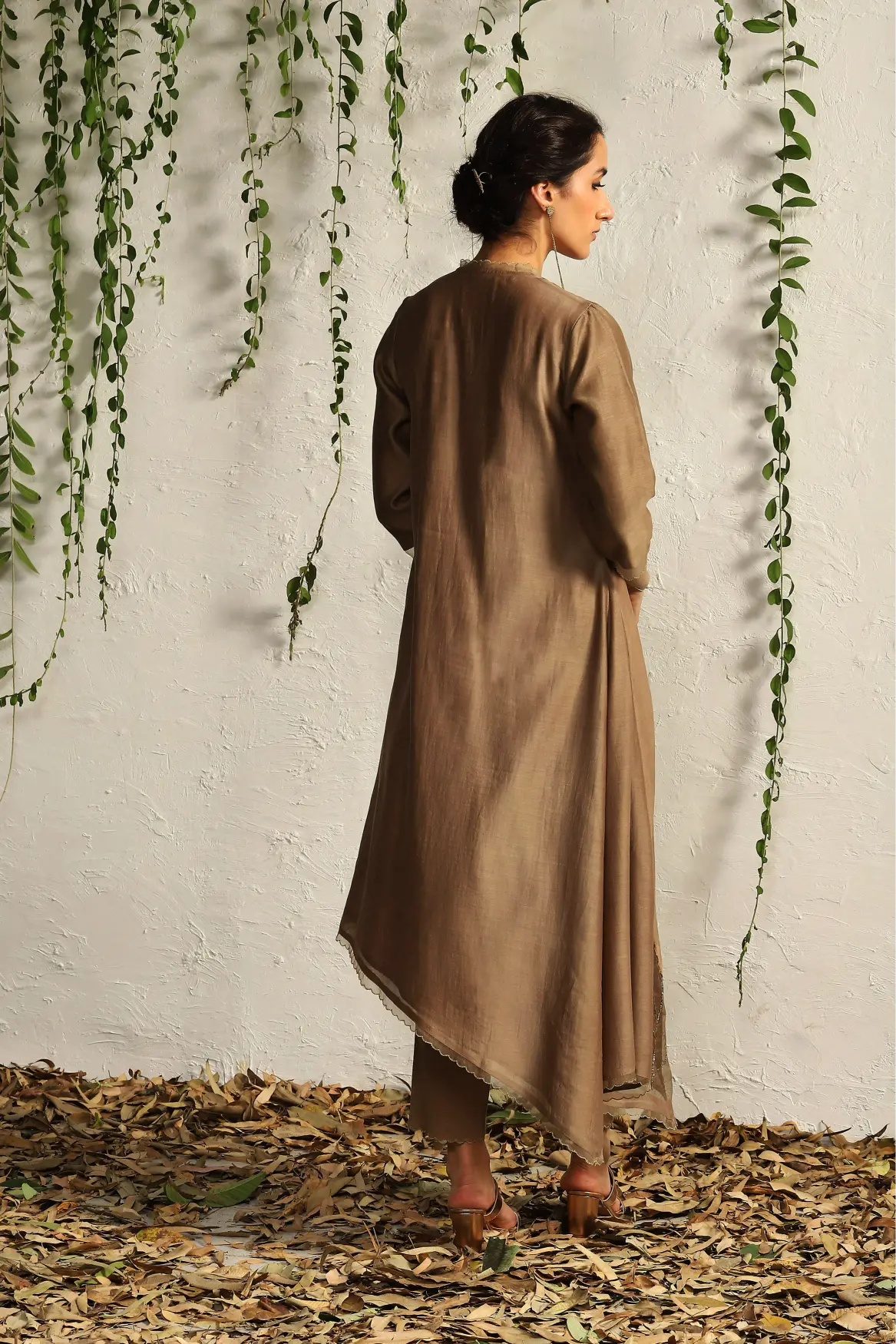 Elevate your style with our Brown Chanderi Asymmetrical Kurta Set, a perfect blend of contemporary flair and timeless elegance. Crafted from luxurious Chanderi fabric, this kurta features a stunning asymmetrical hemline that adds a modern twist to your ensemble, making it ideal for both festive occasions and casual outings. The warm brown hue brings a touch of sophistication, while the flowing silhouette ensures comfort and grace in every movement. Paired with coordinating bottoms, this set is versatile enough to transition effortlessly from day to night.