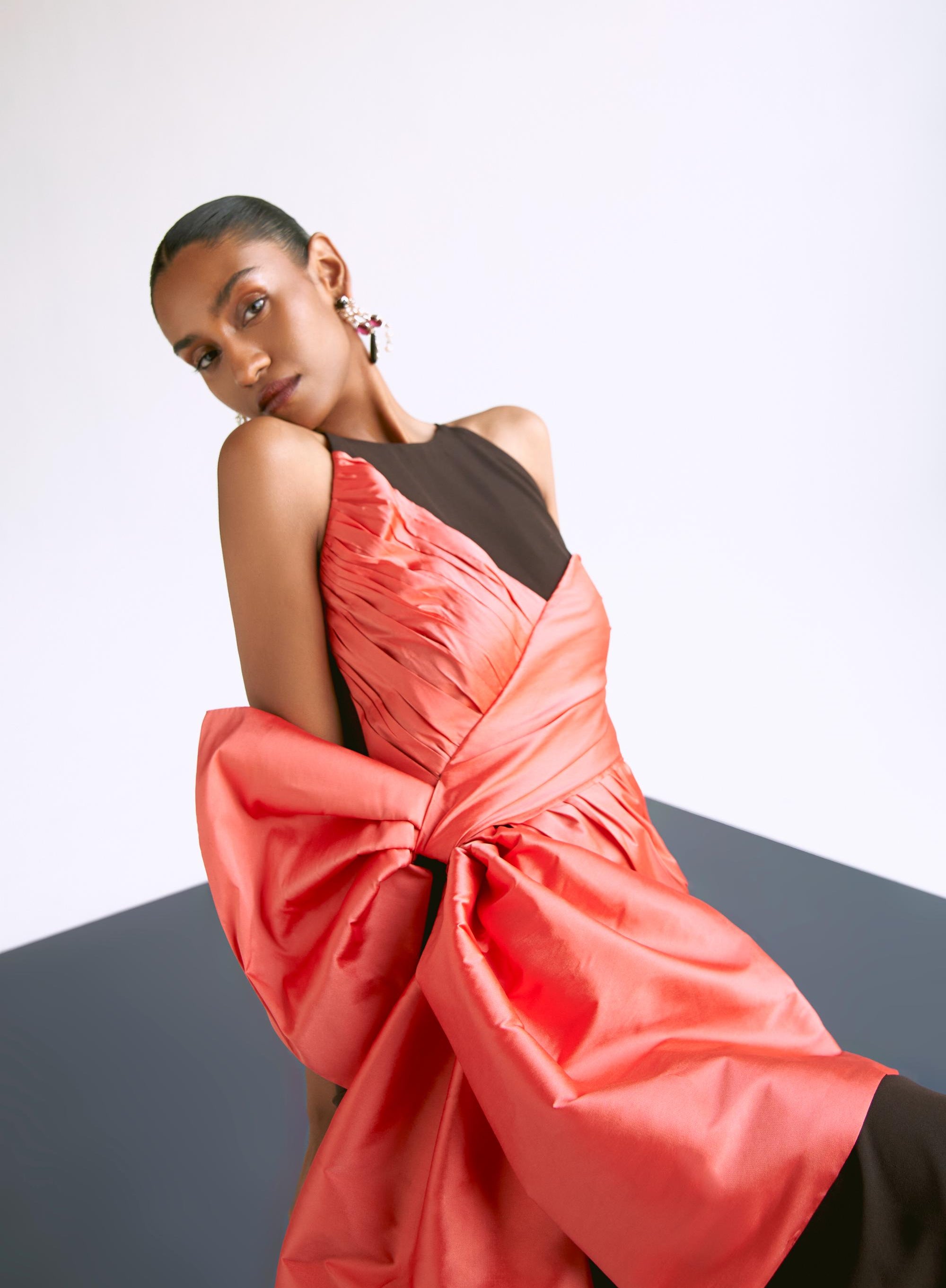 The Brown Fitted Draped Reim Dress with Bow Detail is a striking combination of refined elegance and modern flair. Featuring a flattering fitted silhouette, this dress effortlessly contours to your figure, while the draped fabric creates a soft, sophisticated flow. The addition of a bold bow detail at the waist adds a playful yet chic touch, elevating the overall design.
