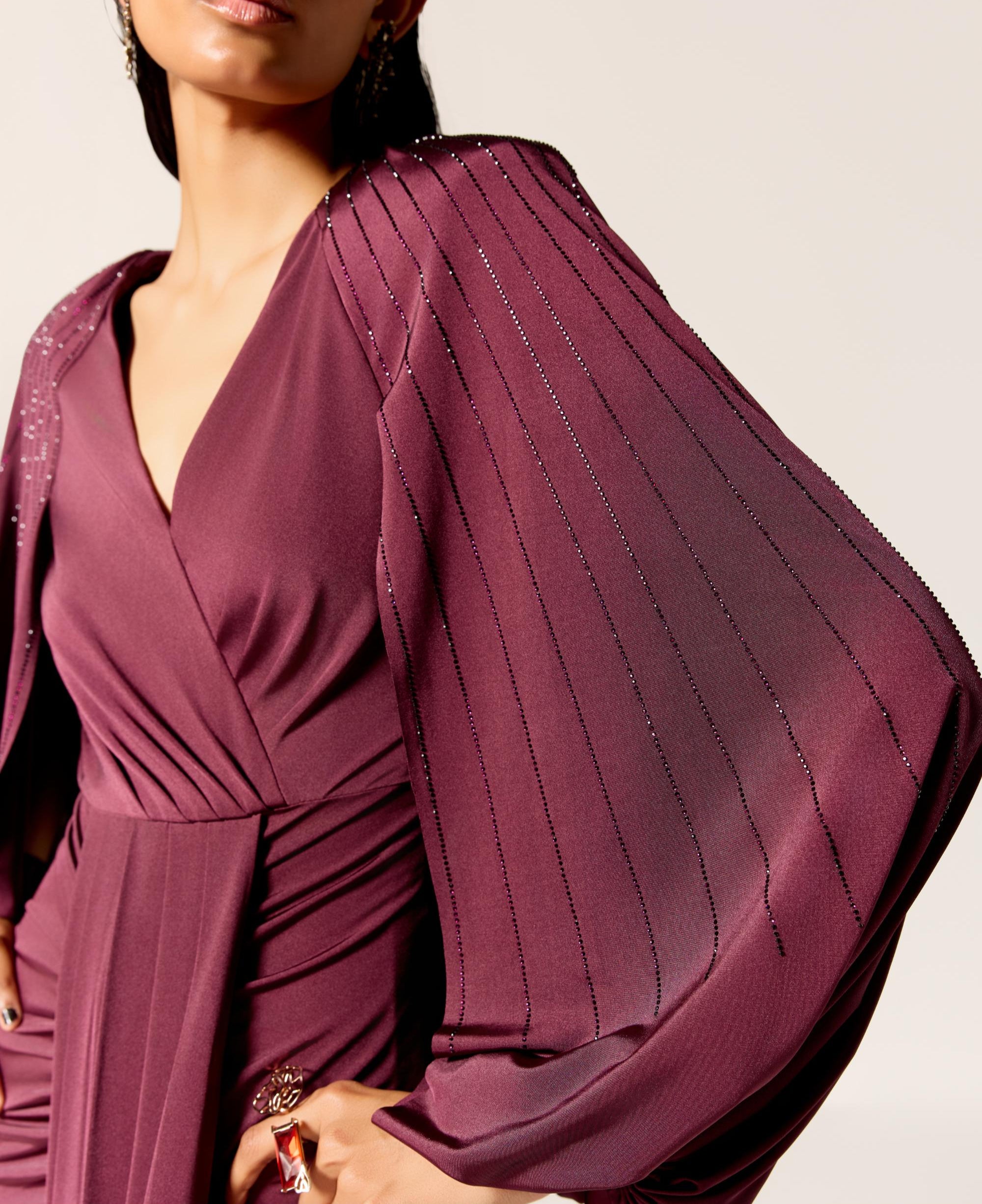 The Brown Najm Eminence Gown offers a warm, luxurious take on evening elegance. With rich tones and refined craftsmanship, it creates a graceful silhouette. Subtle embellishments or cuts add modern edge to a classic design. Ideal for autumnal weddings or elegant affairs. A sophisticated standout.