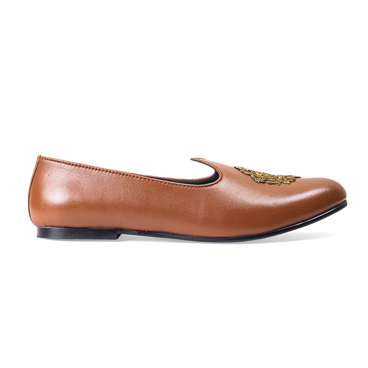 Exude sophistication with the Brown Royal Crest Leather Juttis, a perfect fusion of heritage craftsmanship and modern refinement. Made from premium brown leather, these juttis feature a meticulously embroidered royal crest motif, symbolizing grandeur, power, and tradition. Ideal for weddings, festive occasions, and formal gatherings, they offer a distinguished and timeless appeal.