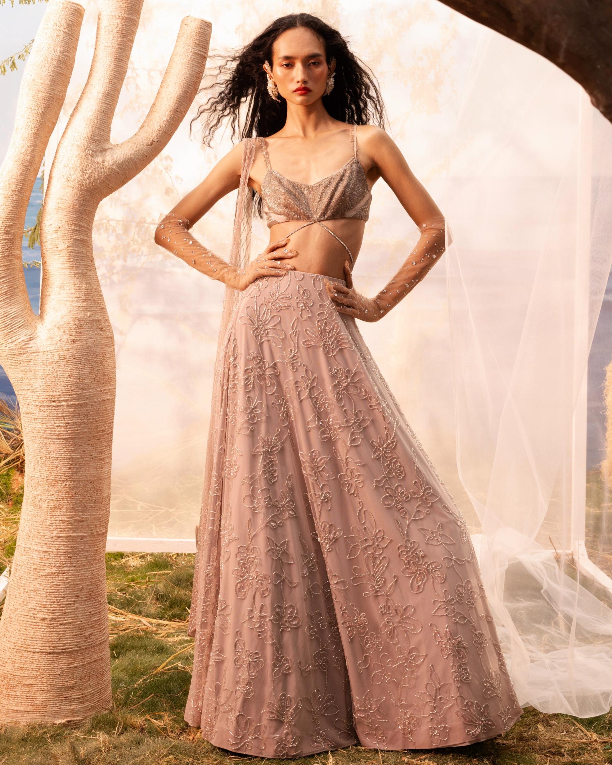 Sophisticated, bold, and beautifully elegant, the Burnt Pink Florentia Lehenga with Blouse and Dupatta is a stunning choice for any special occasion. The rich burnt pink hue brings warmth and depth to the intricately designed lehenga, while the blouse perfectly complements the flowing silhouette. The addition of the dupatta adds a touch of grace and refinement, making this ensemble ideal for weddings, festive celebrations, or formal gatherings. For the woman who loves to blend tradition with contemporary style, this lehenga set offers a timeless and luxurious look that will leave a lasting impression.