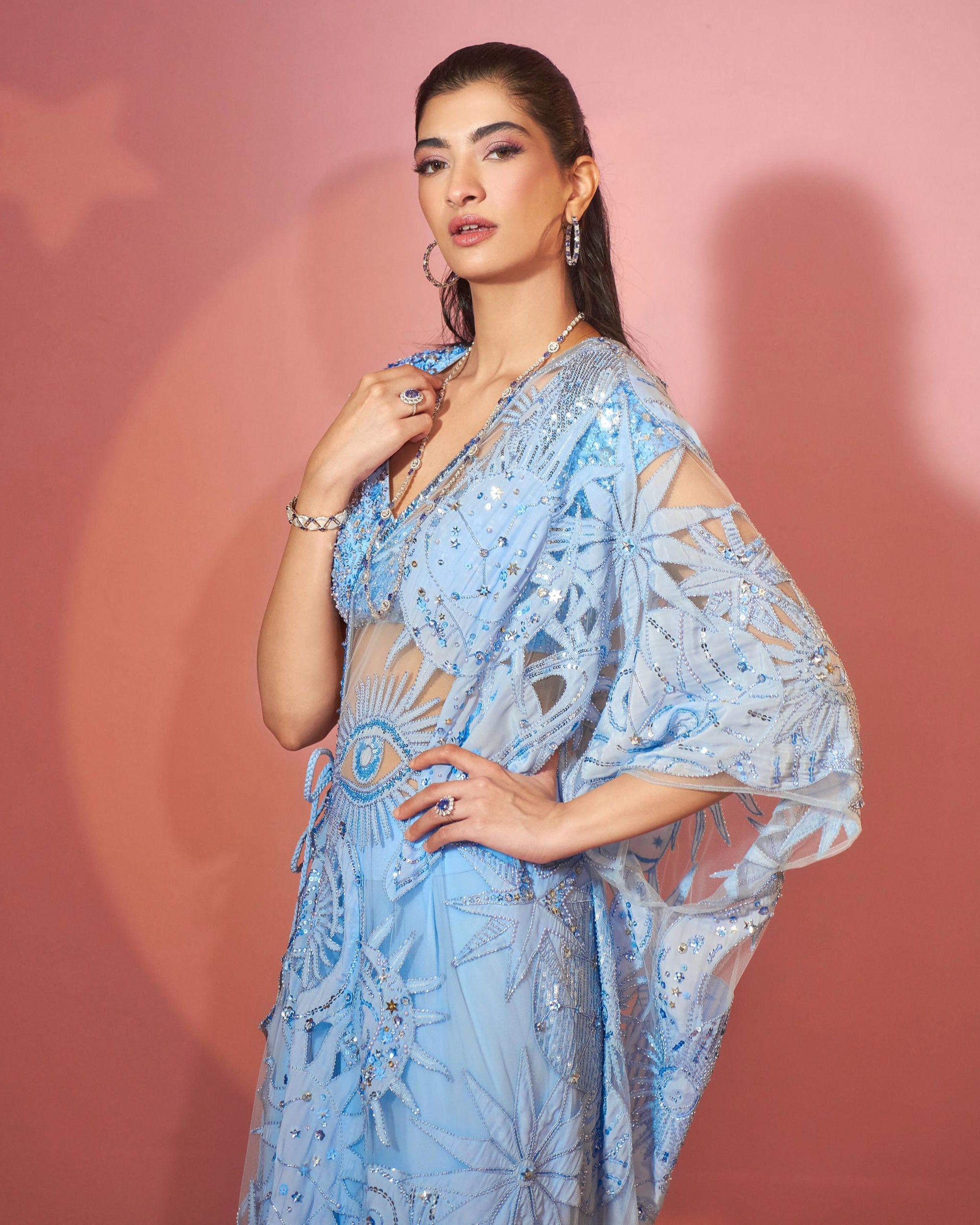 Unveil effortless sophistication with the Chambray Blue Superstar Kaftan Ð a versatile piece that brings together comfort and high fashion. Crafted from soft, breathable chambray fabric, this kaftan drapes gracefully, offering a relaxed fit without compromising on style. The striking superstar design adds a touch of glamour, making it the perfect statement piece for casual gatherings, beachside getaways, or an evening out.