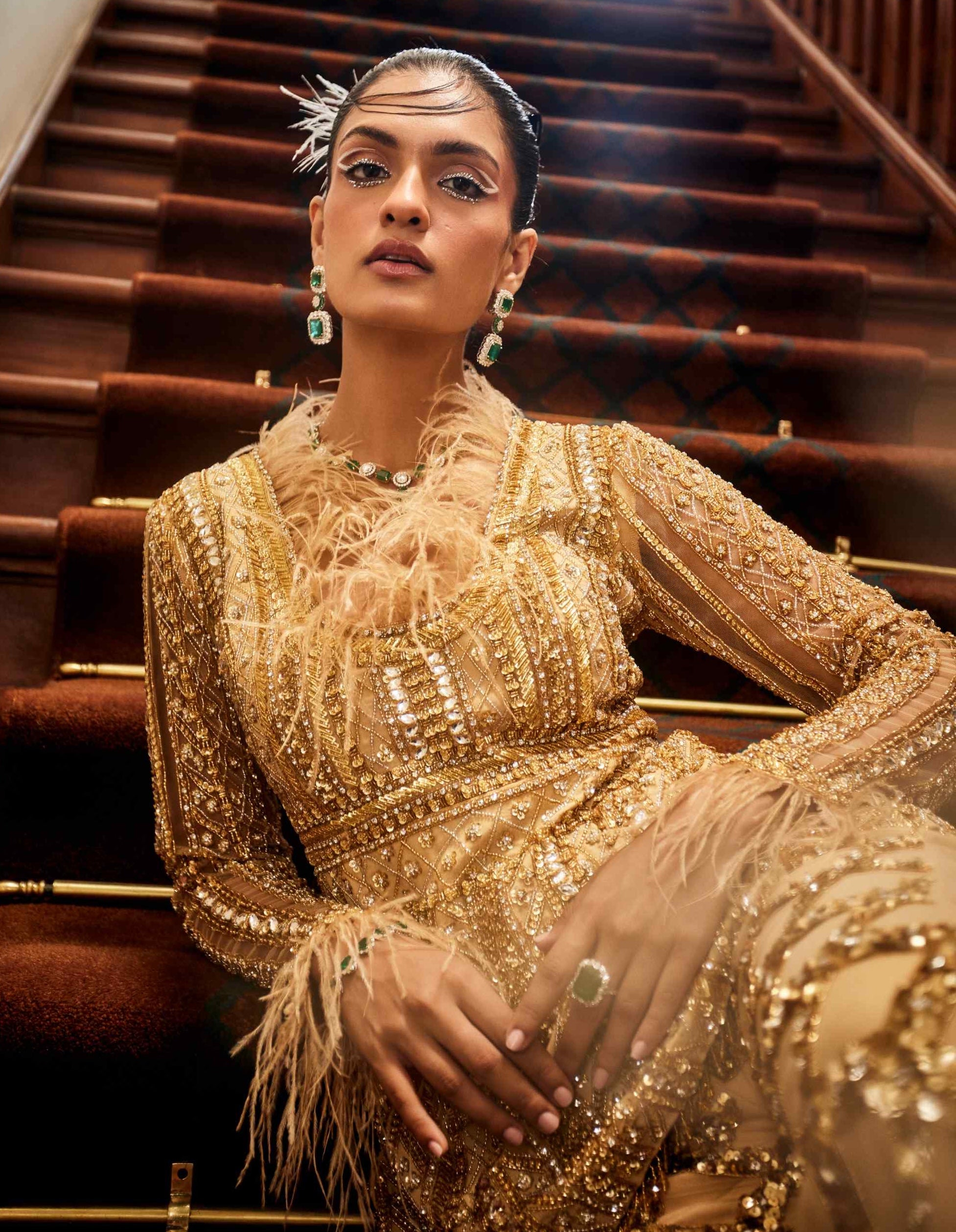 Mani Bhatia's collection captures a refined fusion of modern sophistication and timeless tradition, characterized by soft, muted colors and intricate craftsmanship. Each piece offers a unique blend of contemporary silhouettes with traditional motifs, featuring detailed embroidery, delicate embellishments, and a palette that ranges from soft pastels to rich, vibrant hues. The collection reflects a balance between elegance and comfort, making it ideal for those seeking a statement look that embodies both heritage and modernity.