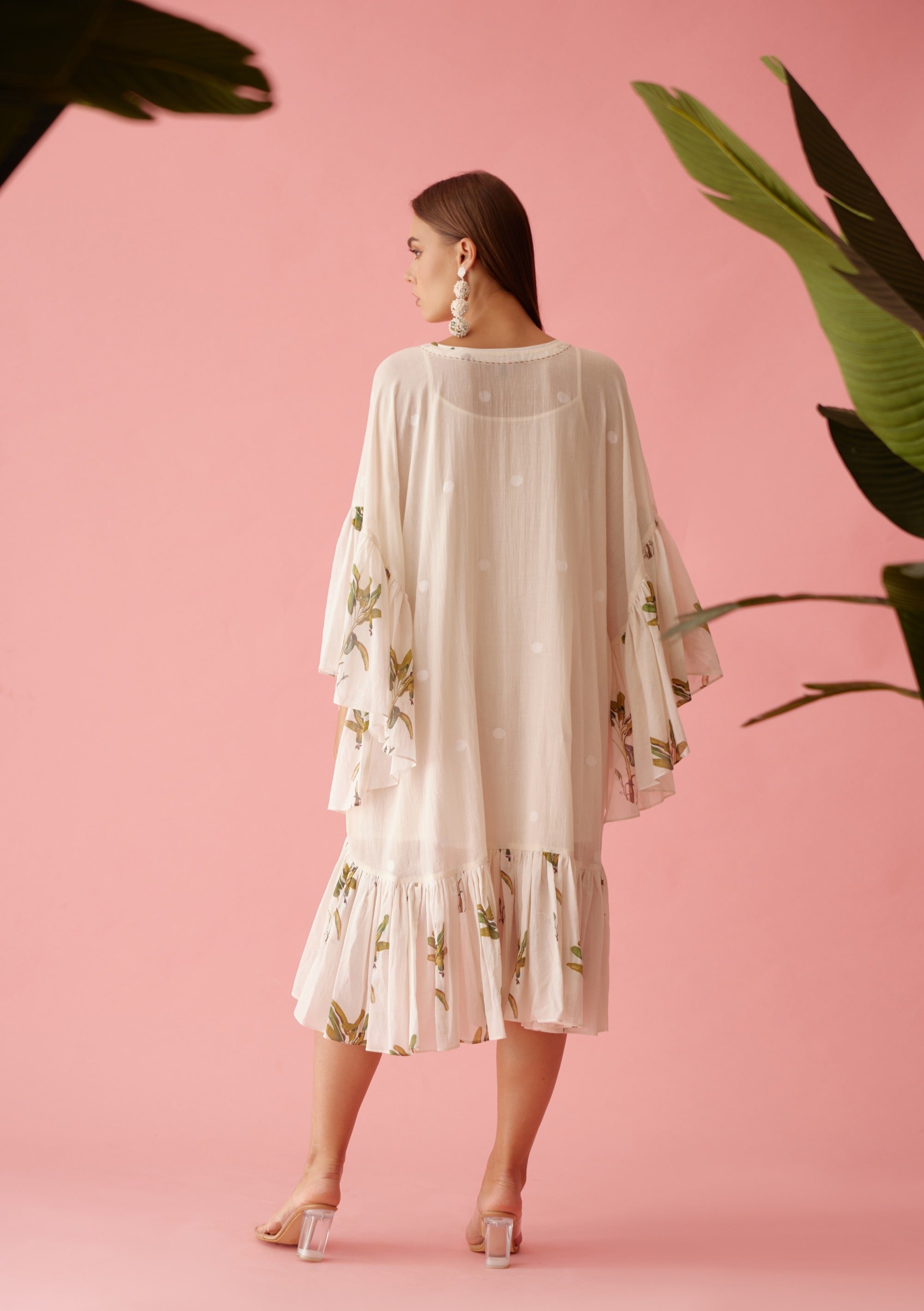 Experience the elegance of traditional craftsmanship with our cream handwoven Jamdani cotton dress. This beautifully designed dress features a charming banana tree print frill at the hem, adding a touch of whimsy and sophistication. The handmade flower tassels enhance the artisanal appeal, providing unique detailing that sets this dress apart. Made from luxurious Jamdani cotton, it offers both comfort and style, making it perfect for a range of occasions. Embrace timeless fashion with this exquisite dress that combines cultural artistry with modern design.