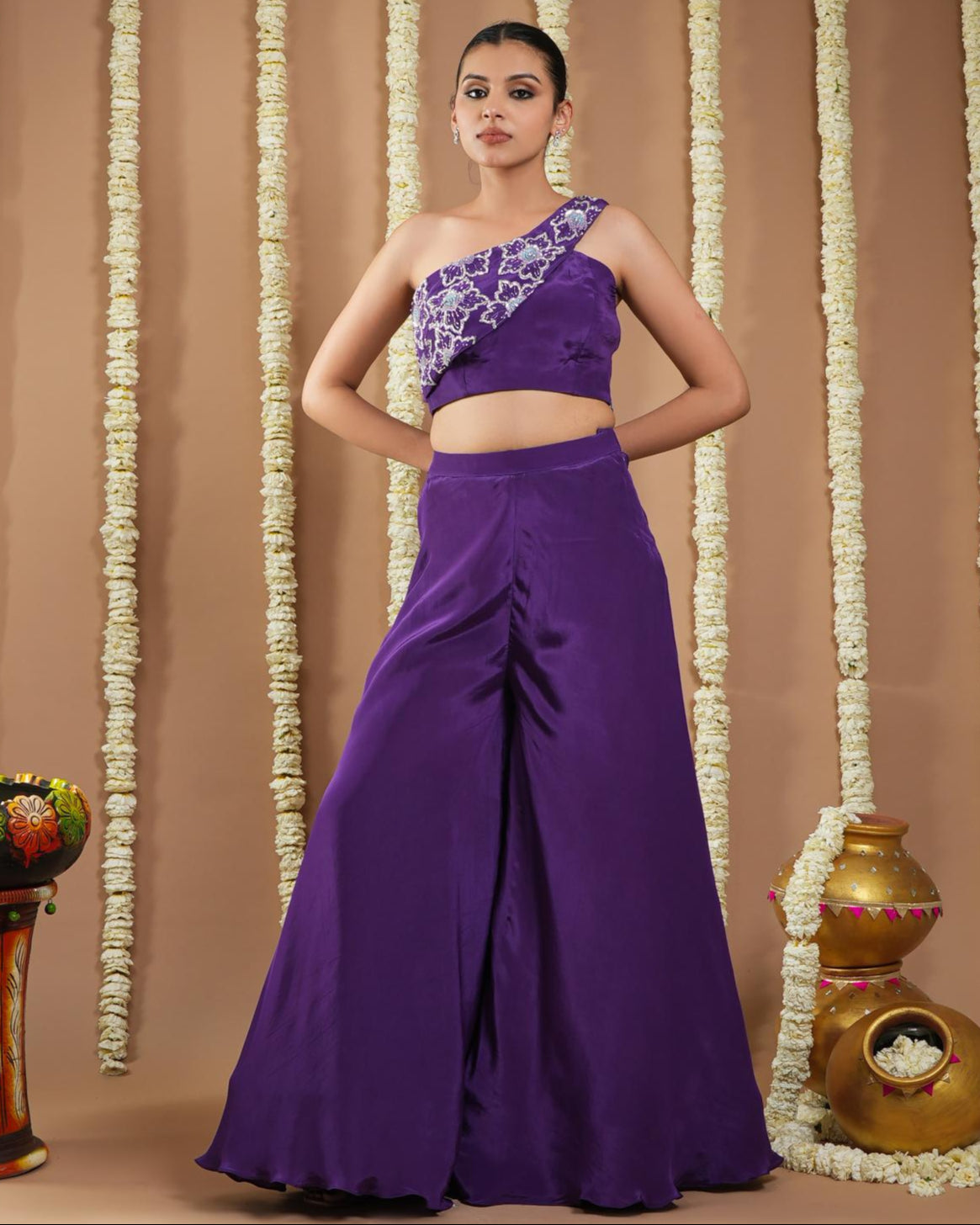 Exude modern royalty in the Dark Purple Avyanna Indo Set. With its rich hue and fusion silhouette, this ensemble is perfect for festive celebrations, elegant soirŽes, and special occasions.