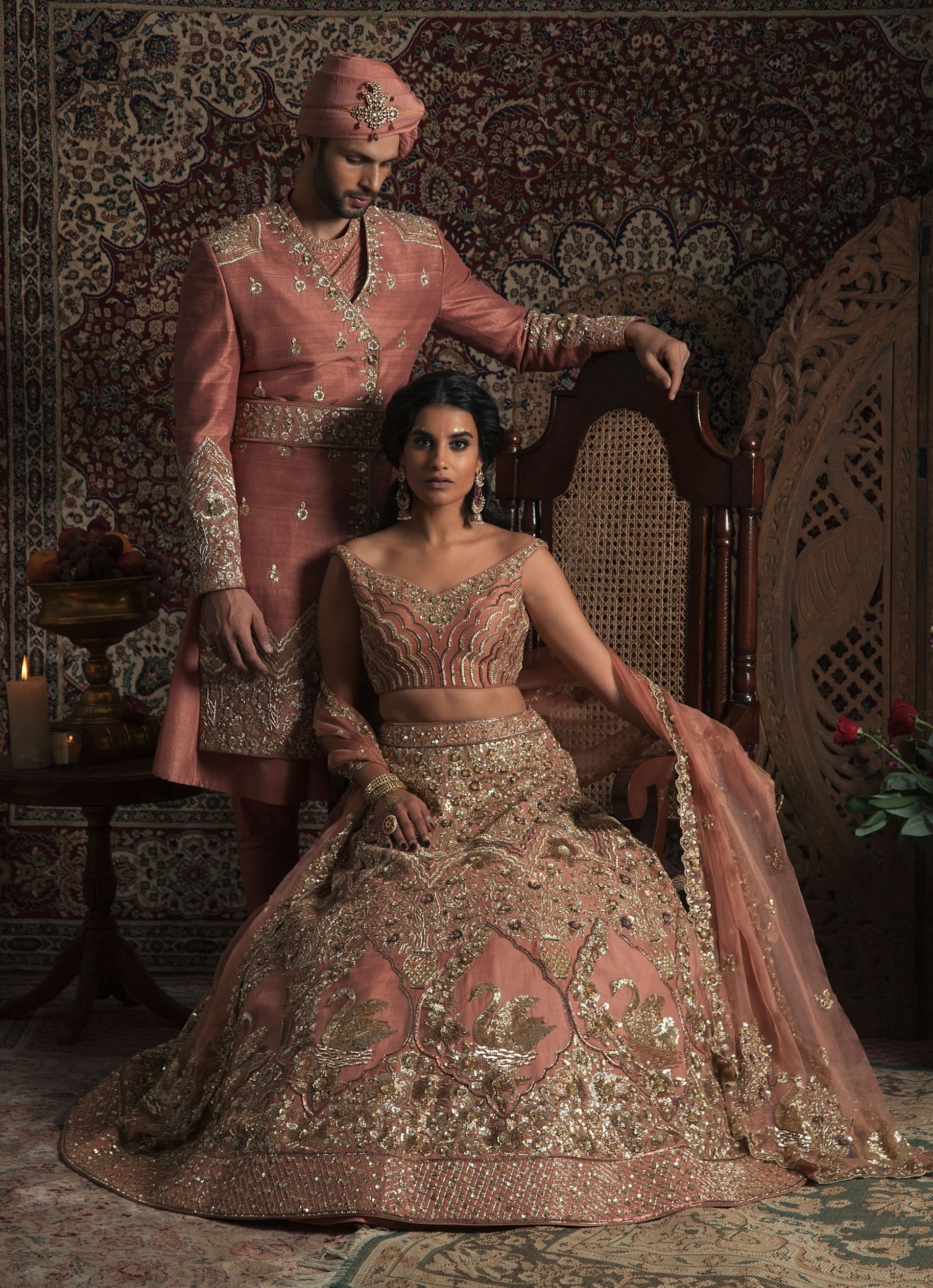 Components: 4 pieces (Sherwani, kurta, churidaar, stole)