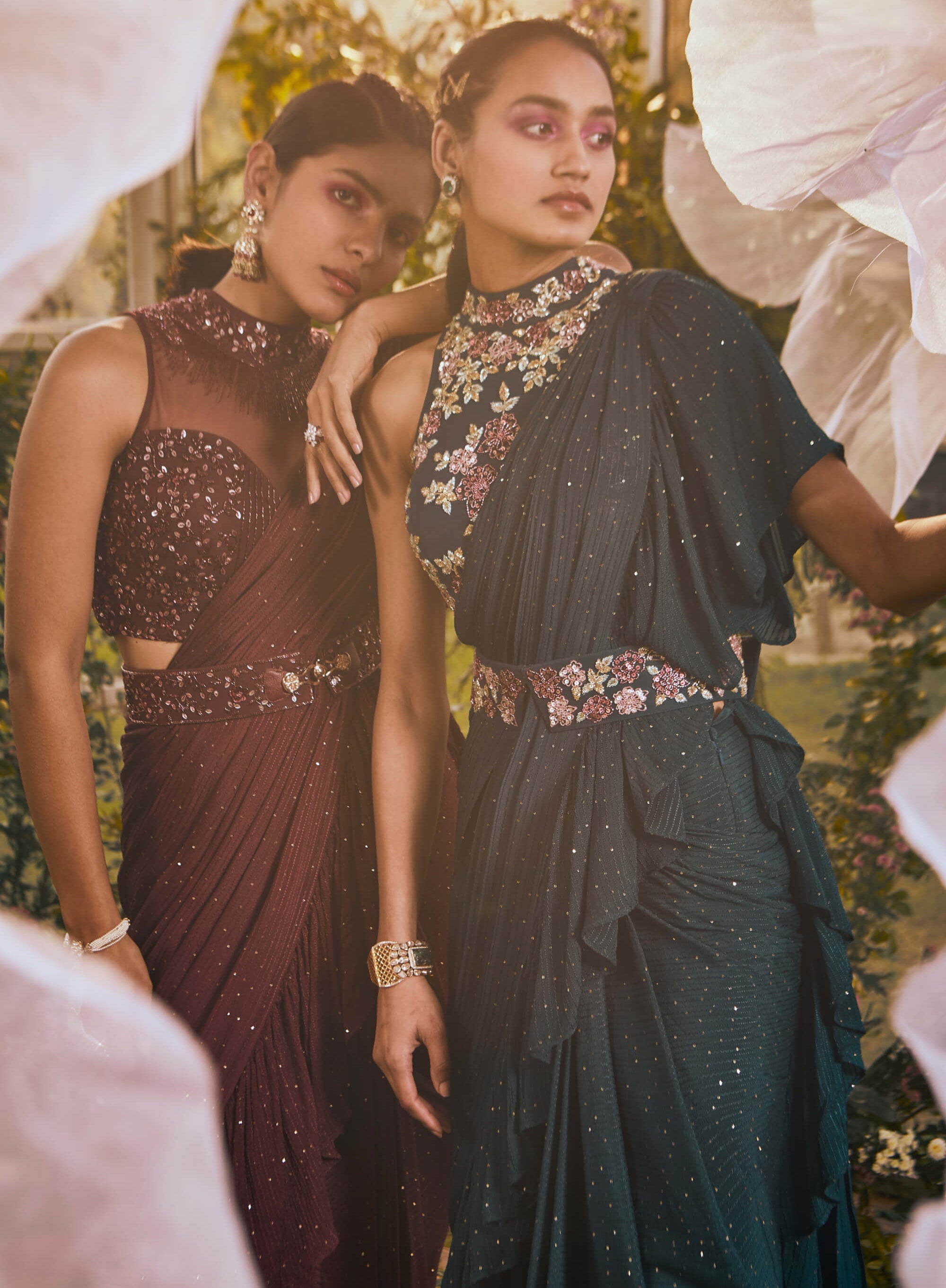 Rachit Khanna's "Turquoise" label is known for its luxurious blend of intricate embroidery, rich fabrics, and contemporary silhouettes. The designs range from opulent bridal wear to elegant occasion pieces, incorporating modern elements while maintaining a strong foundation in traditional craftsmanship. With a focus on vibrant color palettes, unique textures, and detailed embellishments, each piece offers a fresh take on Indian couture, making it ideal for fashion-forward individuals looking to make a statement at any celebration.