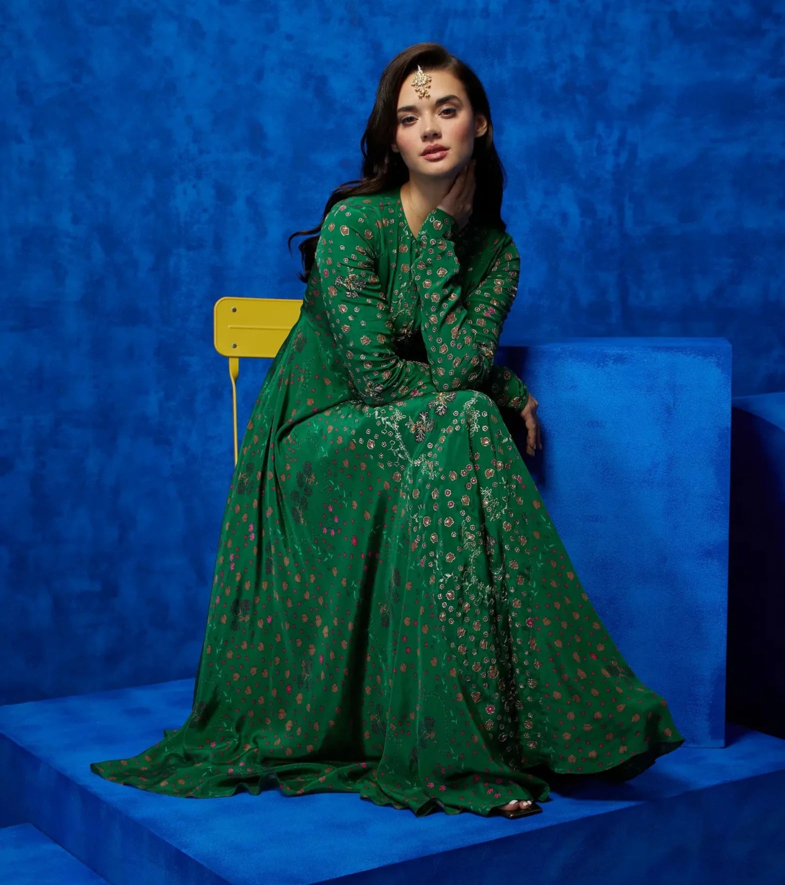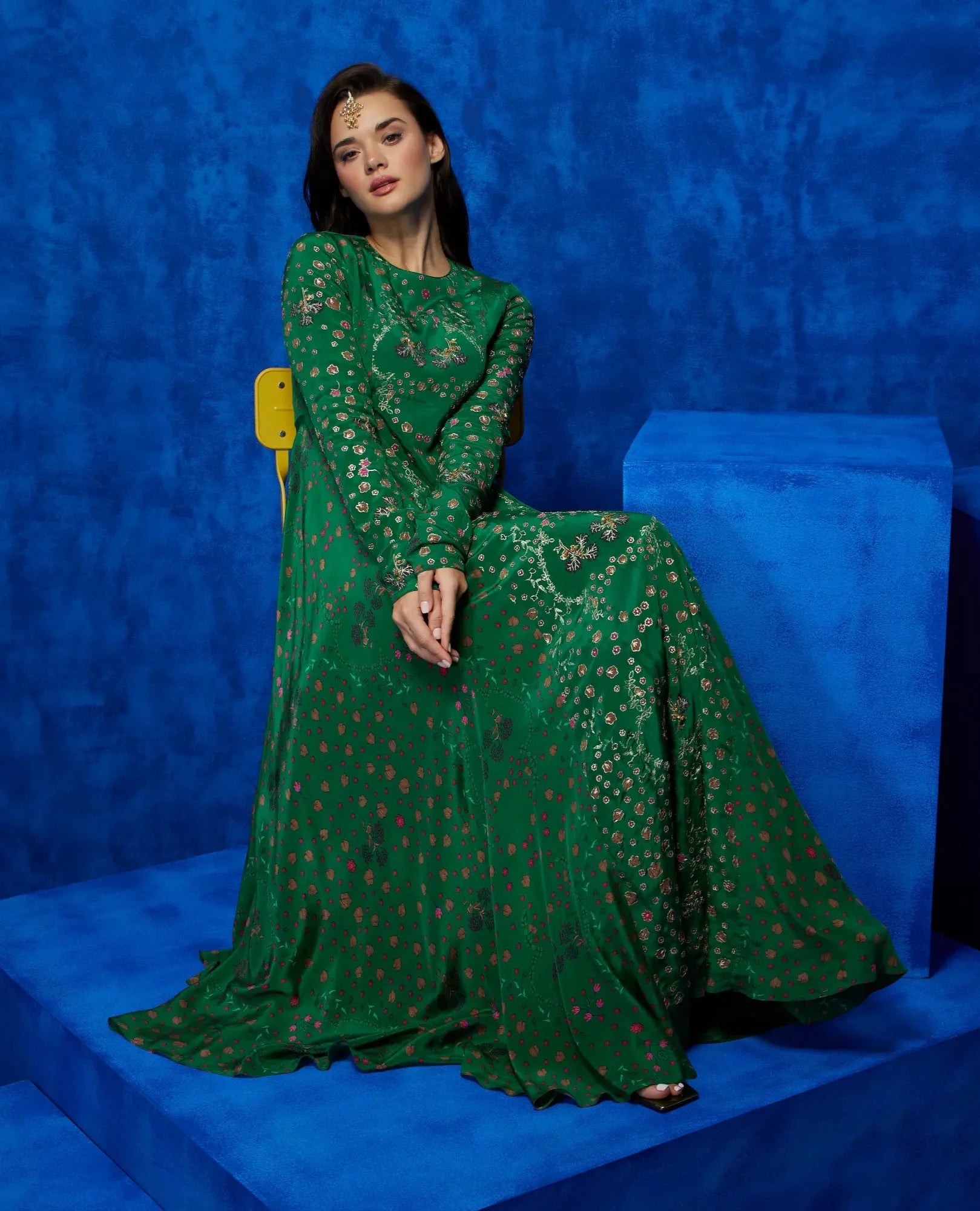 Make a grand entrance in this stunning green floor-length gown. The rich emerald green hue exudes luxury and sophistication, while the elegant, flowing design creates a flattering and timeless silhouette. Perfect for formal events, galas, or evening parties, this gown combines classic charm with modern elegance, ensuring you stand out at any special occasion.