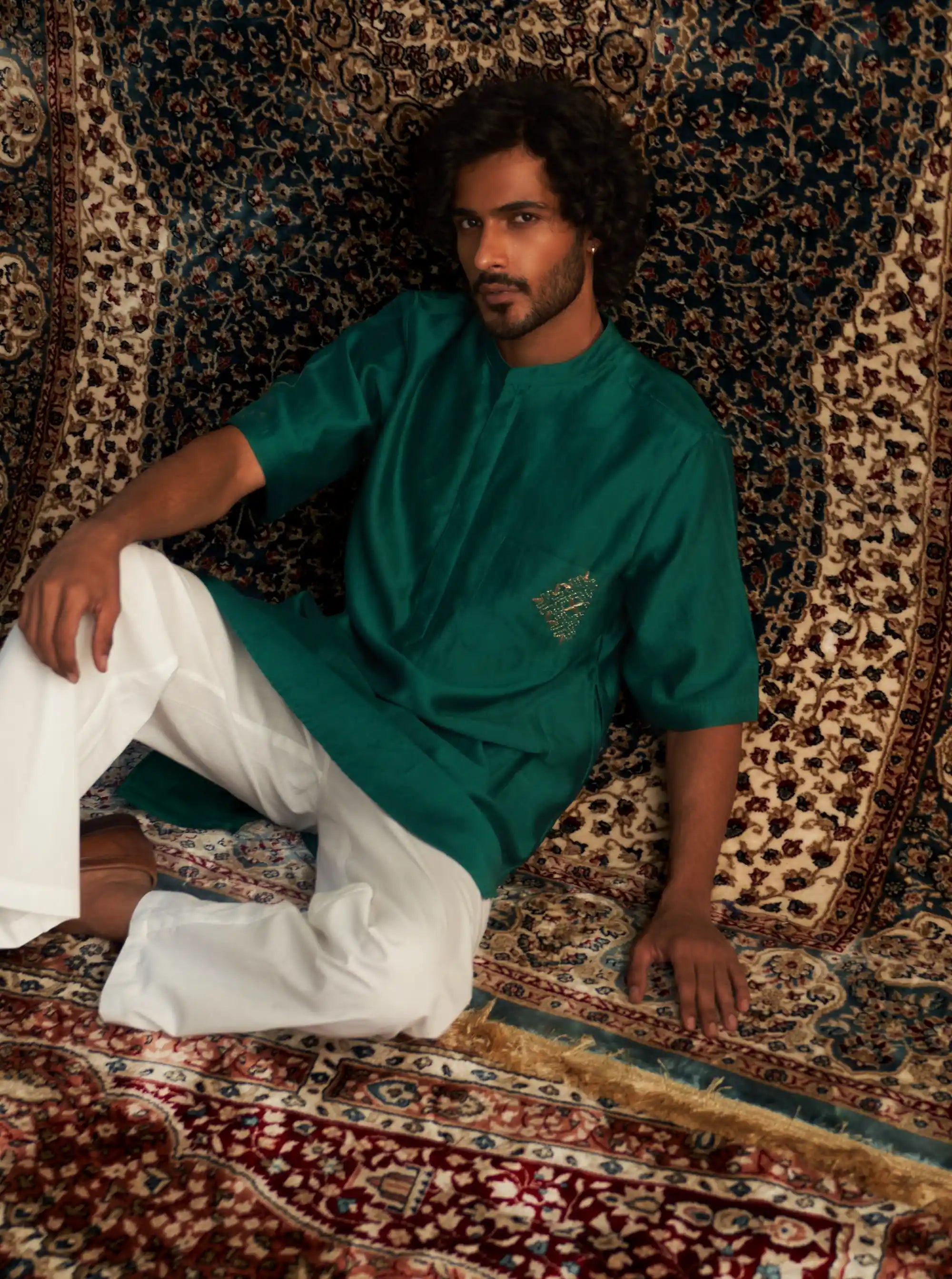 Elevate your style with our classic straight kurta in refreshing aqua green chevron cotton, ideal for any occasion. This stunning kurta is intricately crafted with beautiful threadwork throughout, adding an elegant touch to your look. Paired with comfortable cotton pants, this ensemble combines sophistication with ease. Whether you’re attending a festive celebration or a casual gathering, this outfit ensures you stand out effortlessly while enjoying all-day comfort.