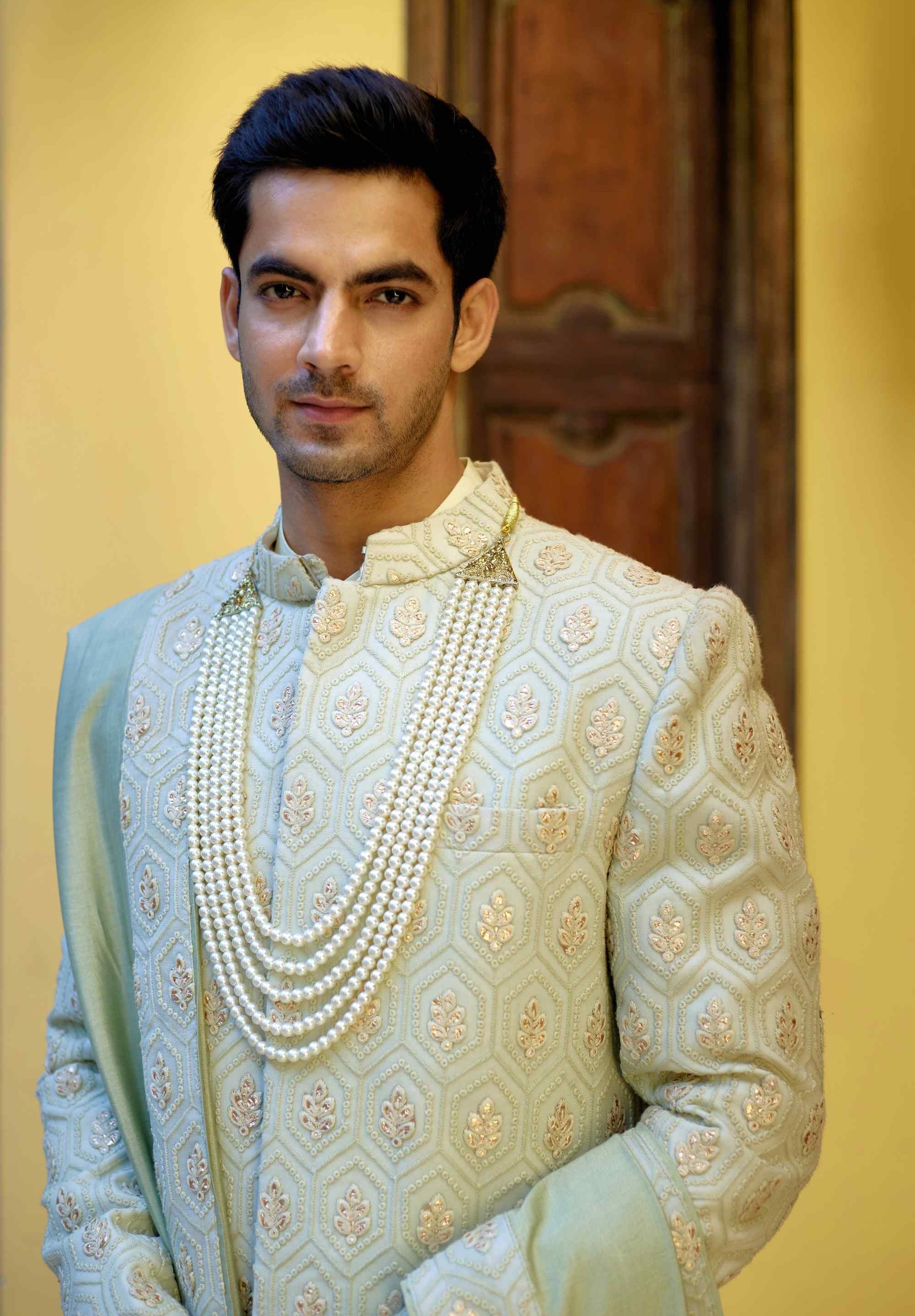 Components: 4 pieces (Kurta, sherwani, stole and churidaar)