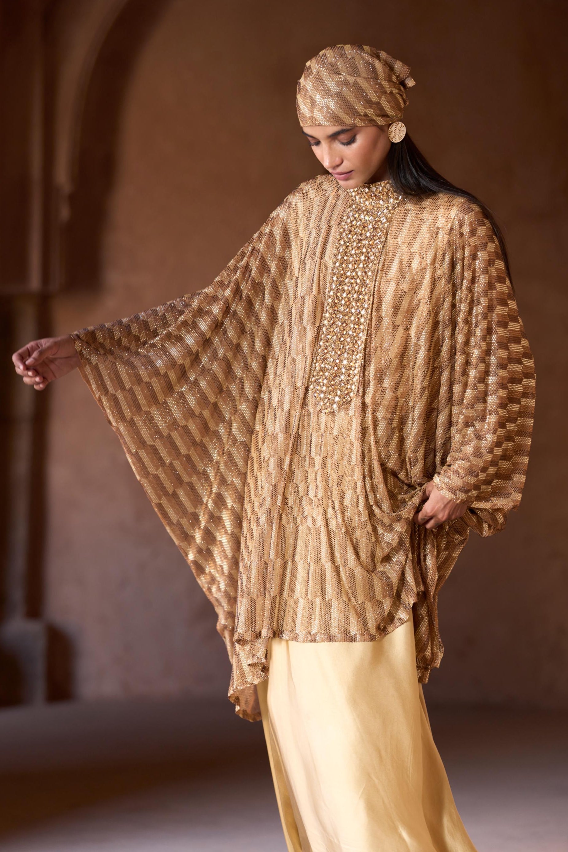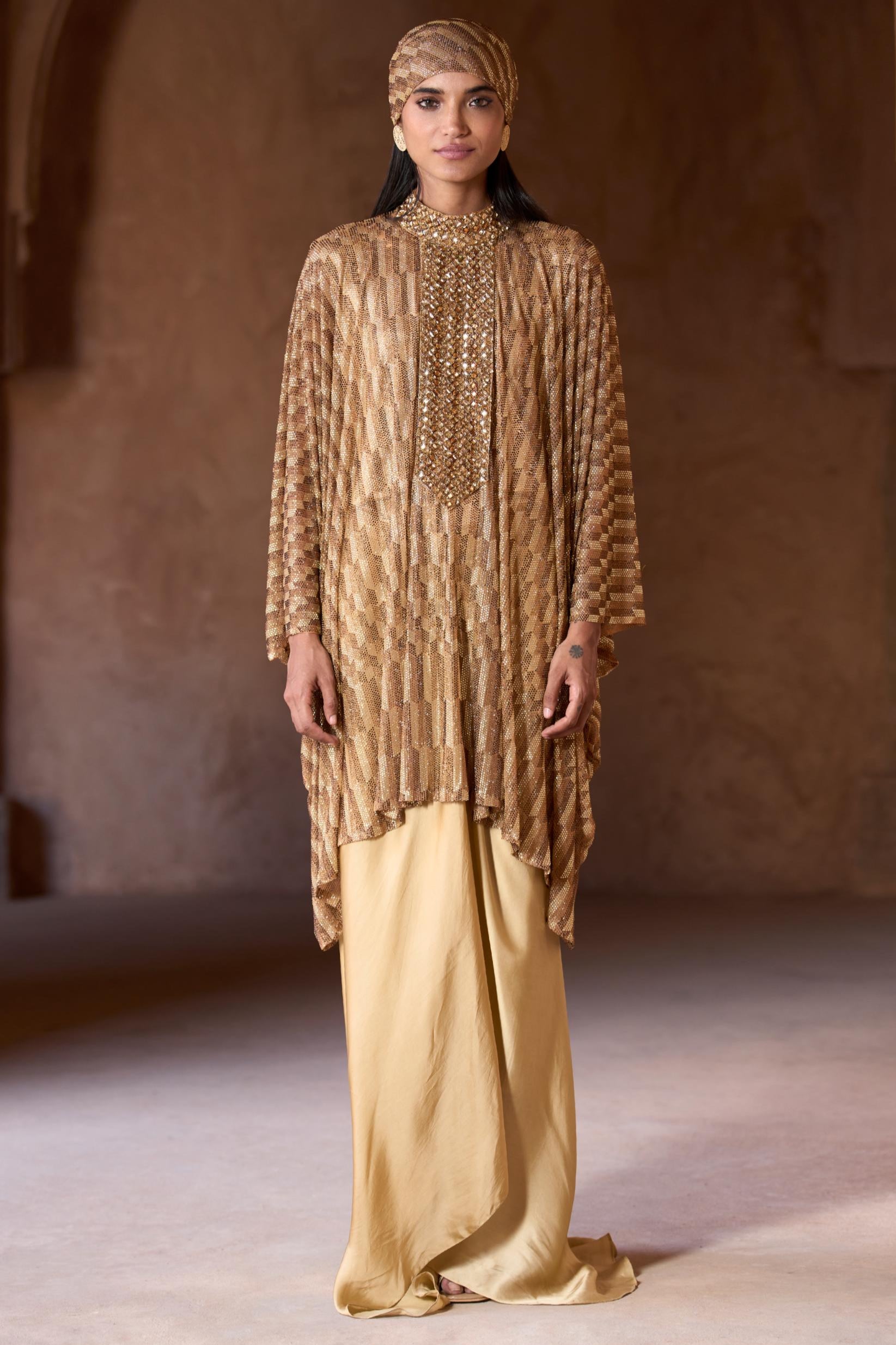 Shine with effortless grace in the Gold Emira Seher Tunic with Skirt Set. The rich gold hue adds a regal touch while the flowing tunic and coordinated skirt offer a silhouette that is both elegant and contemporary. Crafted from lightweight breathable fabric this set is perfect for festive occasions intimate gatherings or evening celebrations. The Gold Emira Seher Tunic with Skirt Set is made for those who love to blend tradition with a hint of modern glamour.
