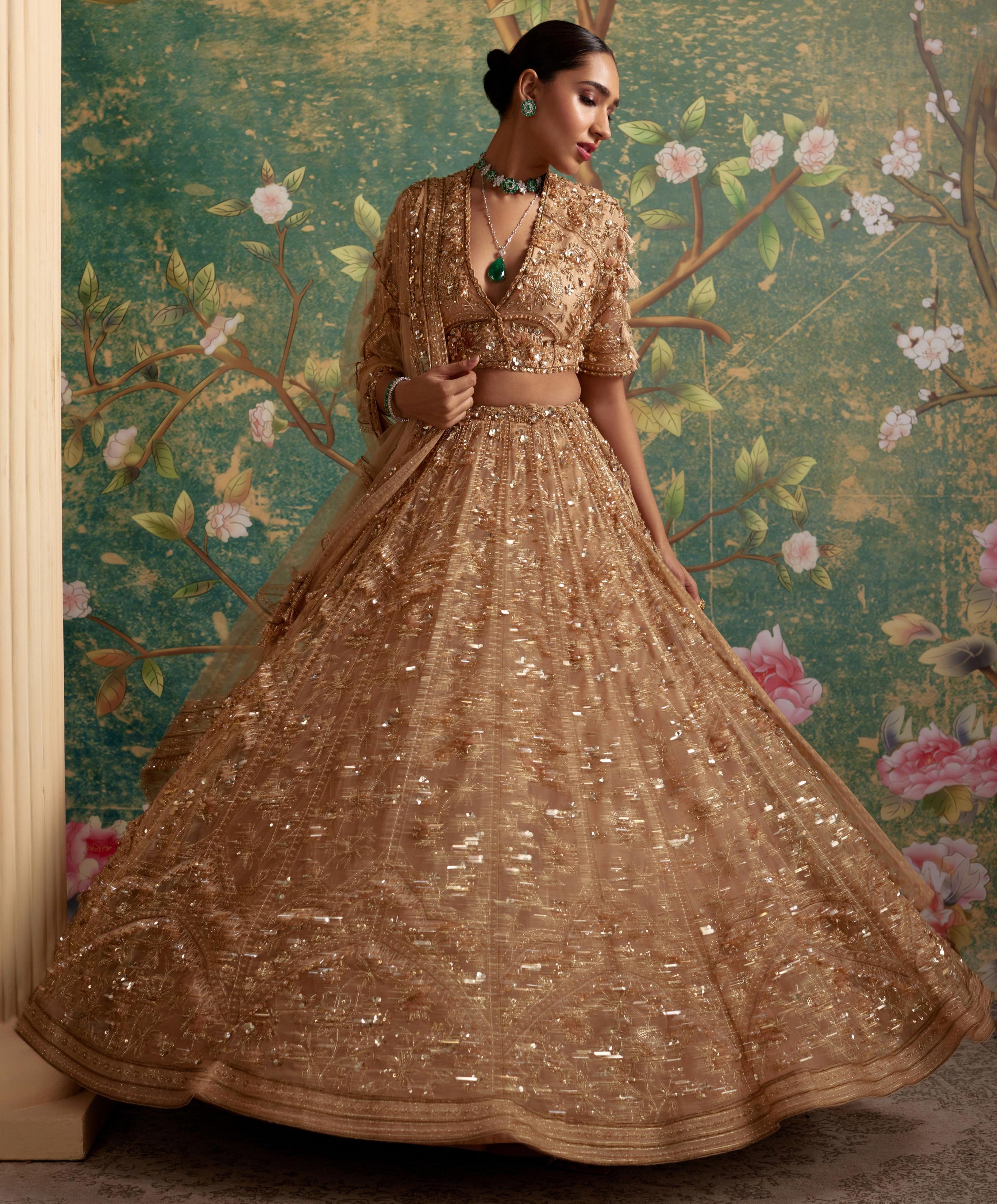 Step into a world of timeless glamour with the Gold Enchanted Era Lehenga Set, a luxurious blend of regal design and intricate craftsmanship. Drenched in a radiant gold hue, this lehenga set features exquisite detailing and a majestic silhouette that exudes elegance. Perfect for weddings, grand celebrations, and festive occasions, this ensemble captures the essence of opulence and tradition. Shine with confidence and grace as you make unforgettable memories in this show-stopping lehenga set.