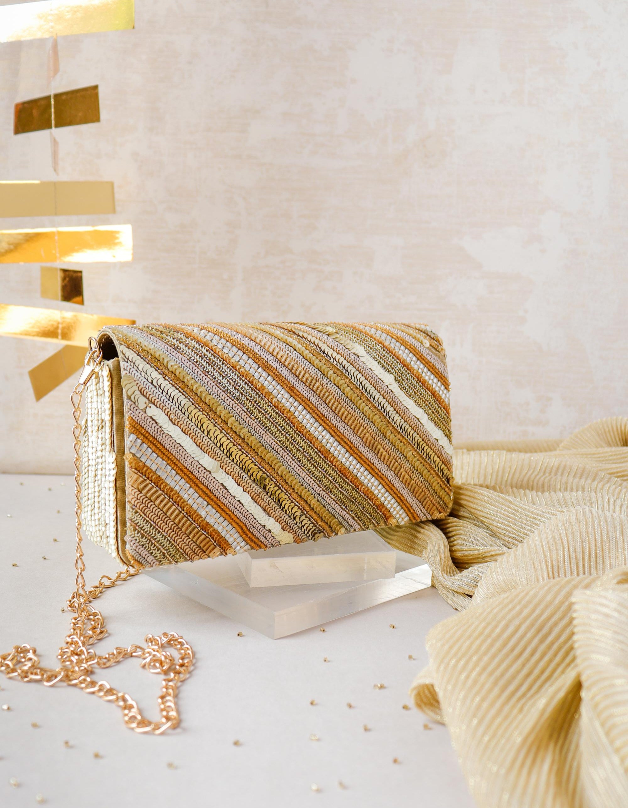 The Gold Farnama Clutch is a statement piece that combines opulent design with timeless elegance. Crafted in a rich gold tone with intricate detailing, this clutch is perfect for weddings, festive celebrations, and special occasions. Its luxurious finish and sleek silhouette add a touch of glamour to any ensemble. Ideal for those who seek classic sophistication with a modern edge.
