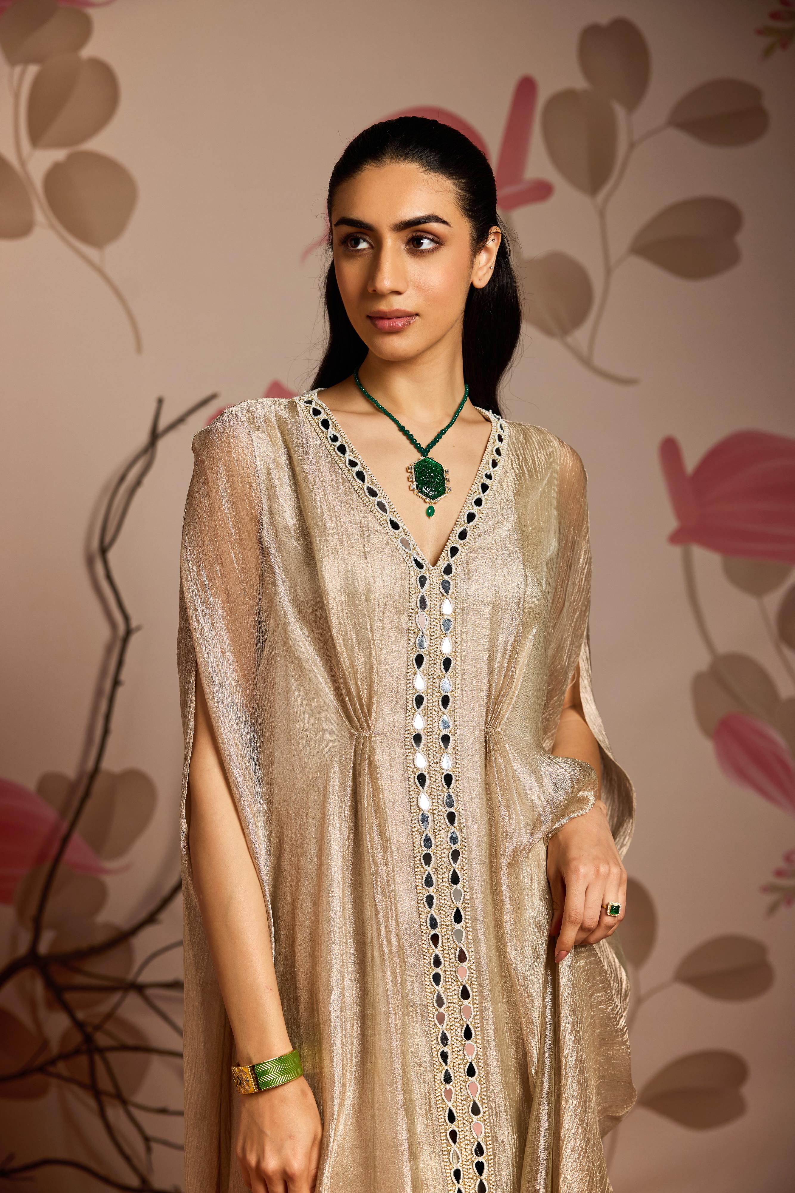 The Gold Oleander Under Bloom Kaftan is a luxurious and captivating piece that merges timeless elegance with nature-inspired beauty. Featuring a rich gold hue, the kaftan is adorned with delicate oleander flower details, adding a subtle yet stunning floral touch. The flowing, relaxed silhouette drapes beautifully over the body, ensuring both comfort and sophistication. Perfect for upscale events, evening wear, or resort outings, this kaftan exudes effortless glamour with a nature-inspired twist. A perfect choice for those seeking a refined, feminine look with a touch of opulence and floral charm.