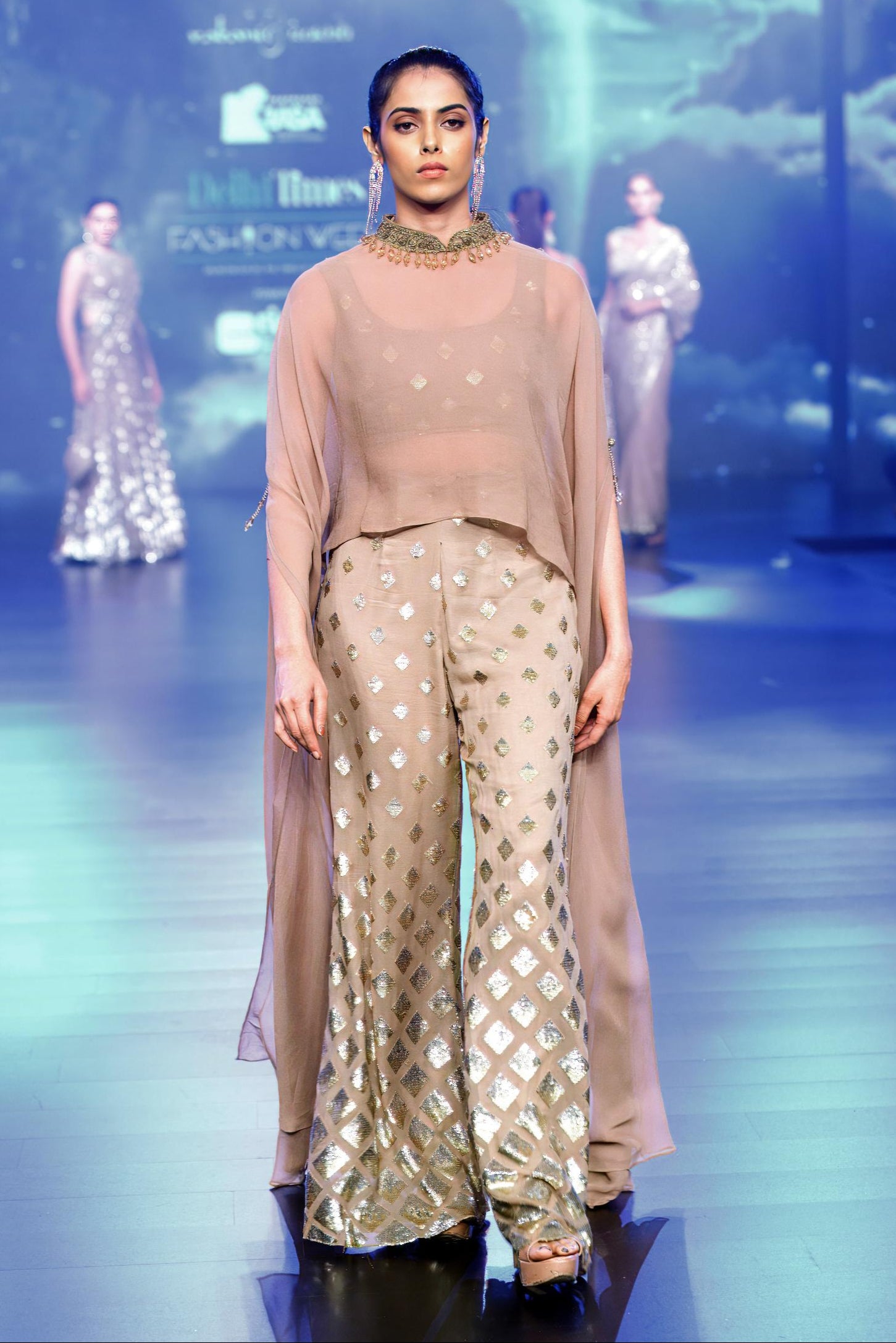 Components: 3 pieces (Cape, blouse, palazzo)