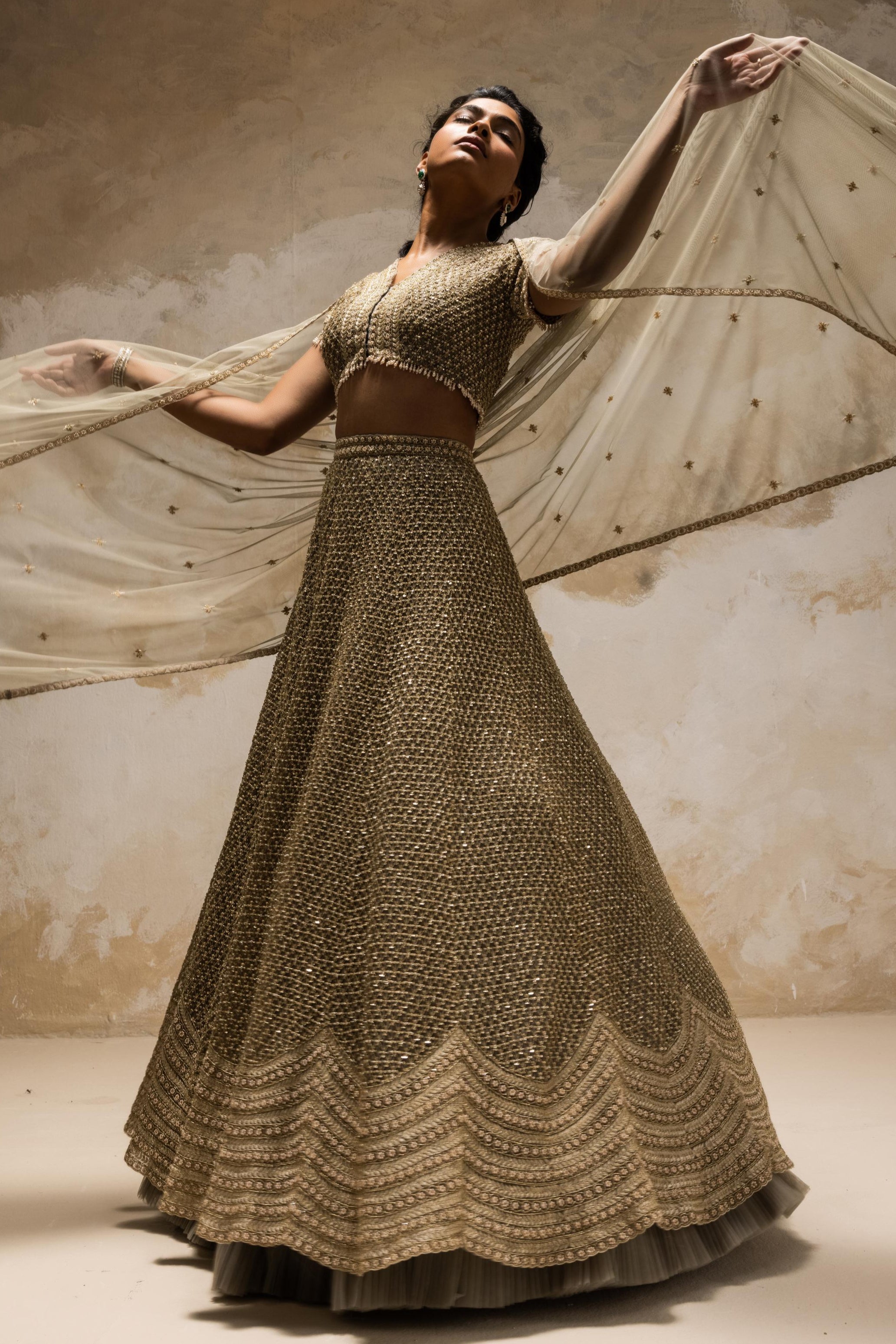 Gold sequins geometric texture lehenga set